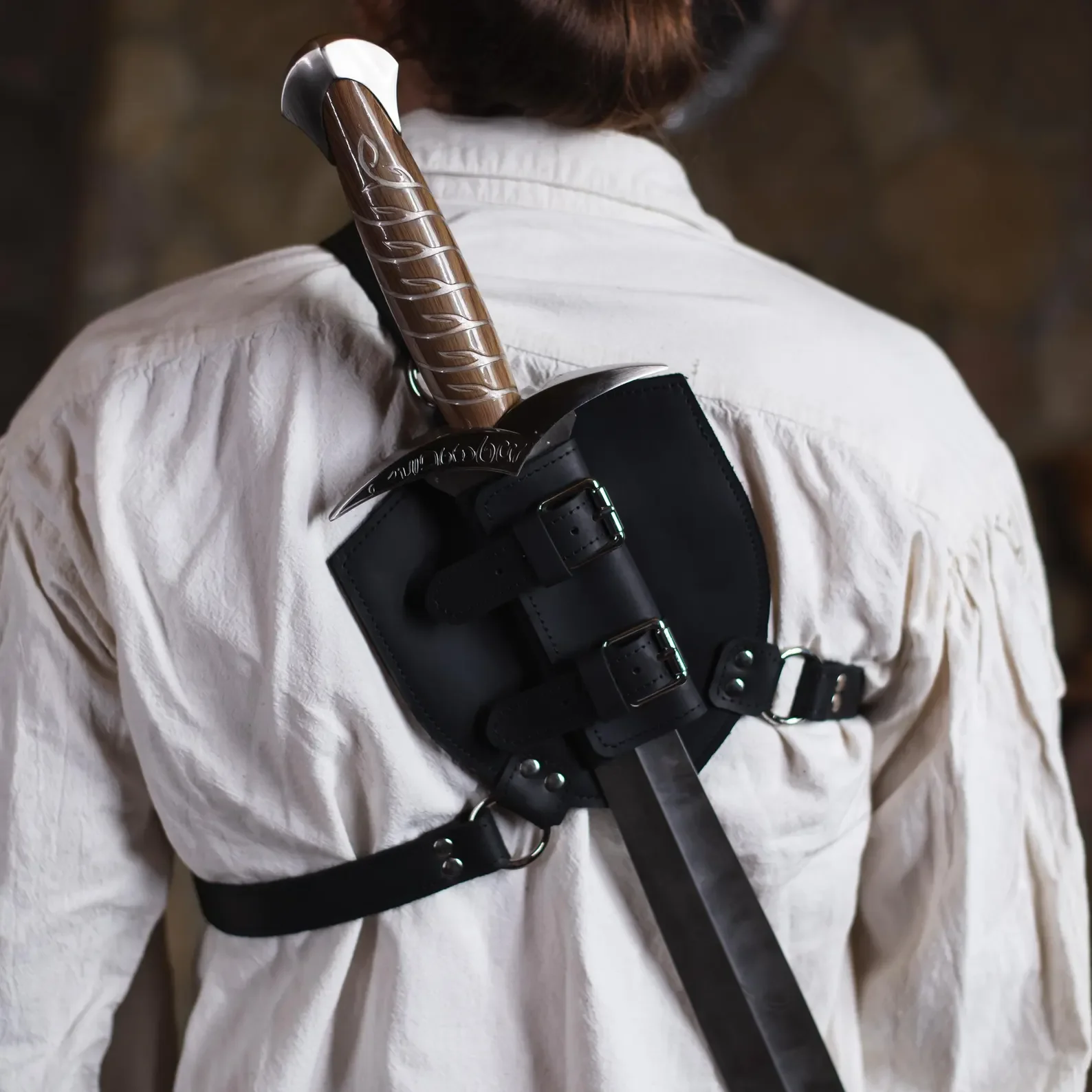 Back-mounted sword holder, leather back sheath, leather long sword ...