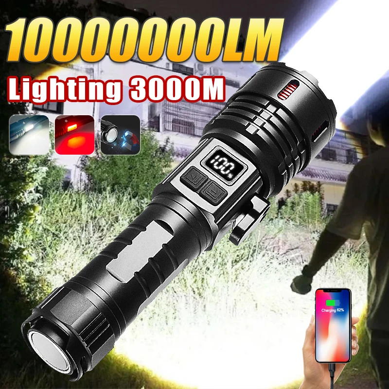 Ultra Powerful LED Flashlight White Laser Tactical Lantern Outdoor Lights Portable Rechargeable LED ...