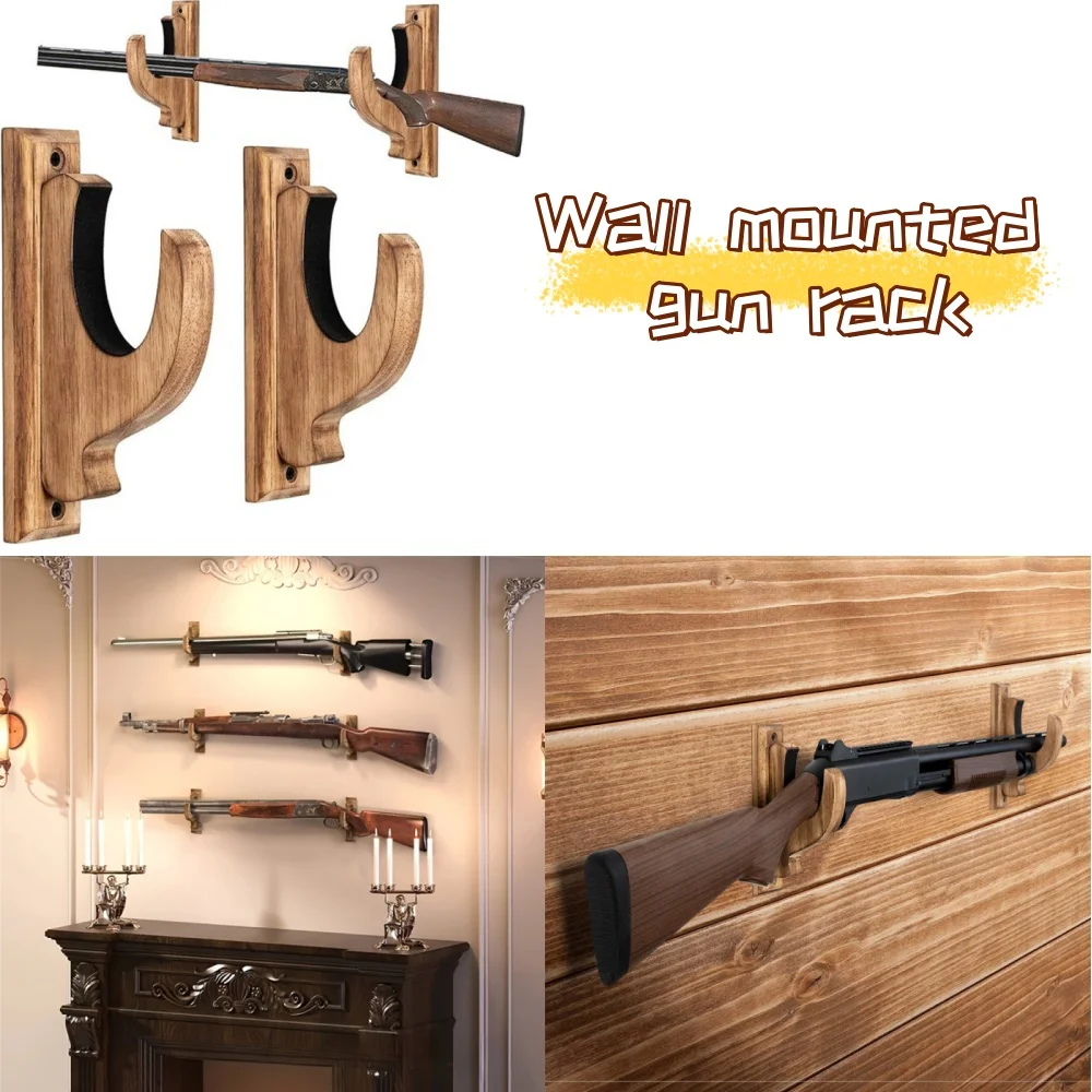 2 Pieces Solid Wood Wall-Mounted Gun Rack Rifle Storage Rack For Ho...