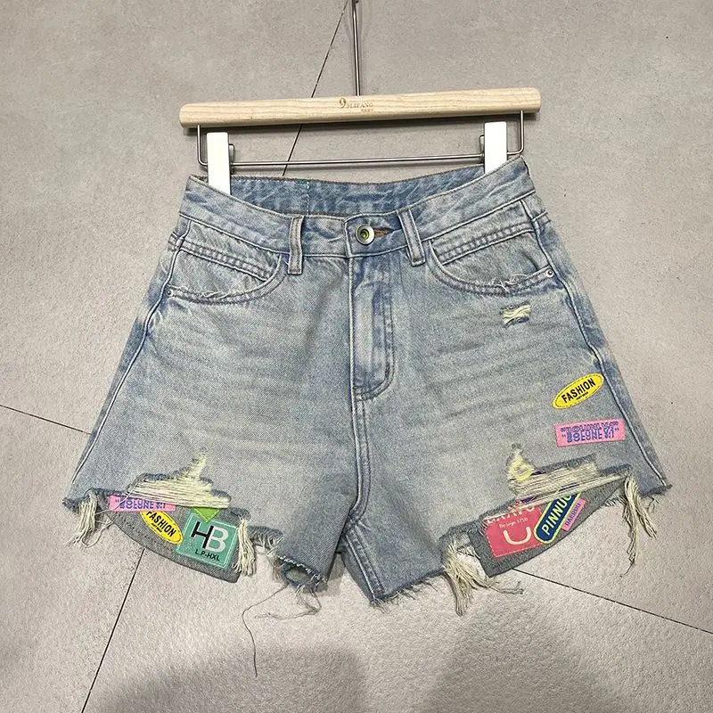 Sexy Low-waisted Denim Shorts 2026 New Summer Hole A Wide-leg Pants Ripped Jeans for Women