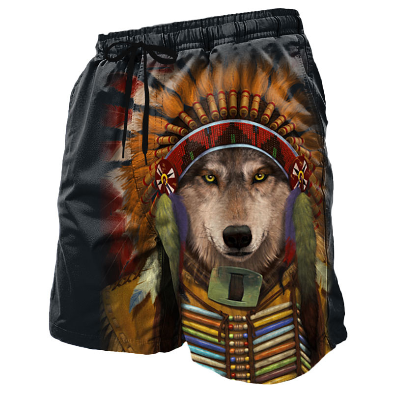 Wolf Sprit Chief by Vincent Hie Men's African Ethnic Wolf Swim Trun...