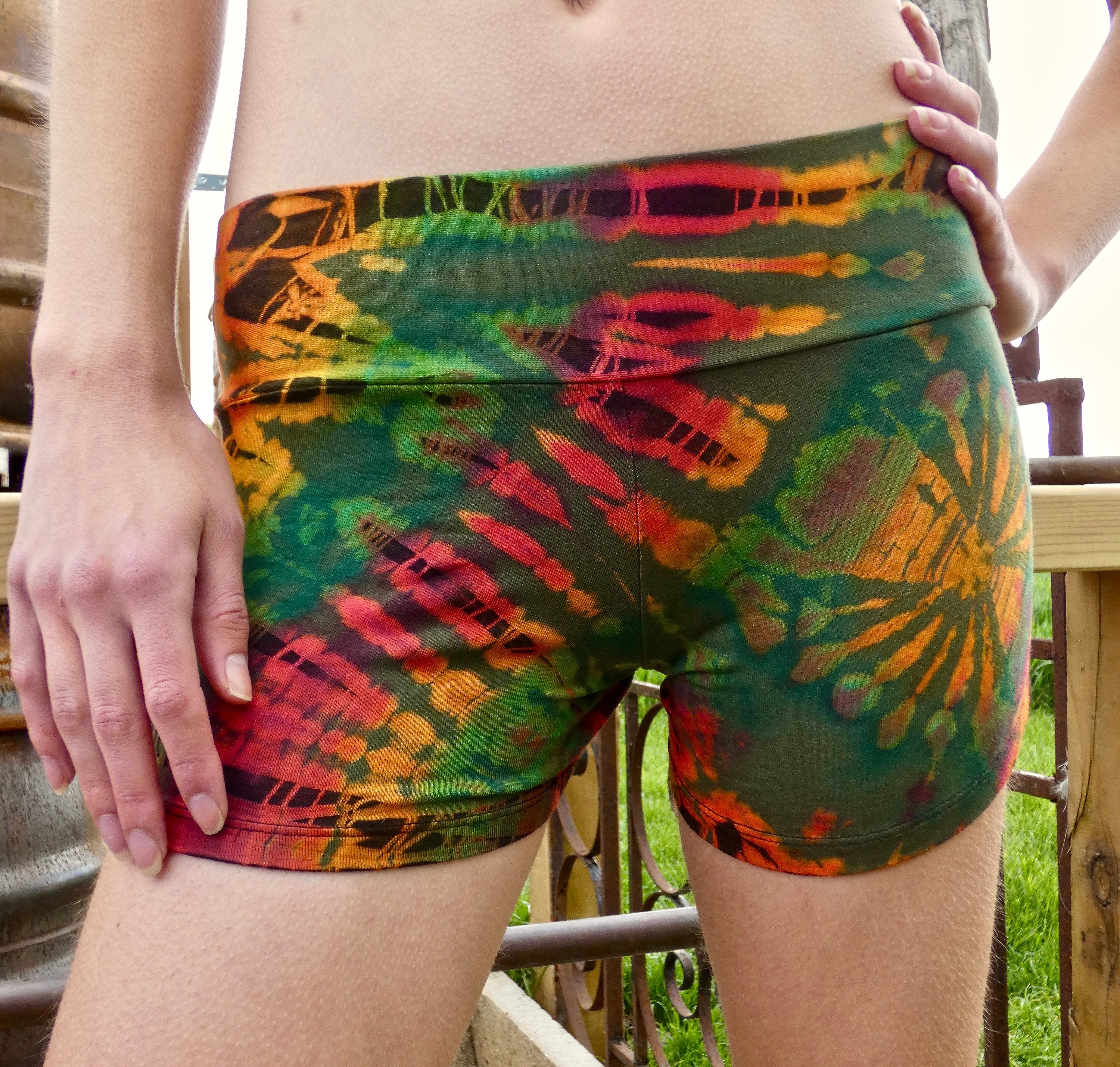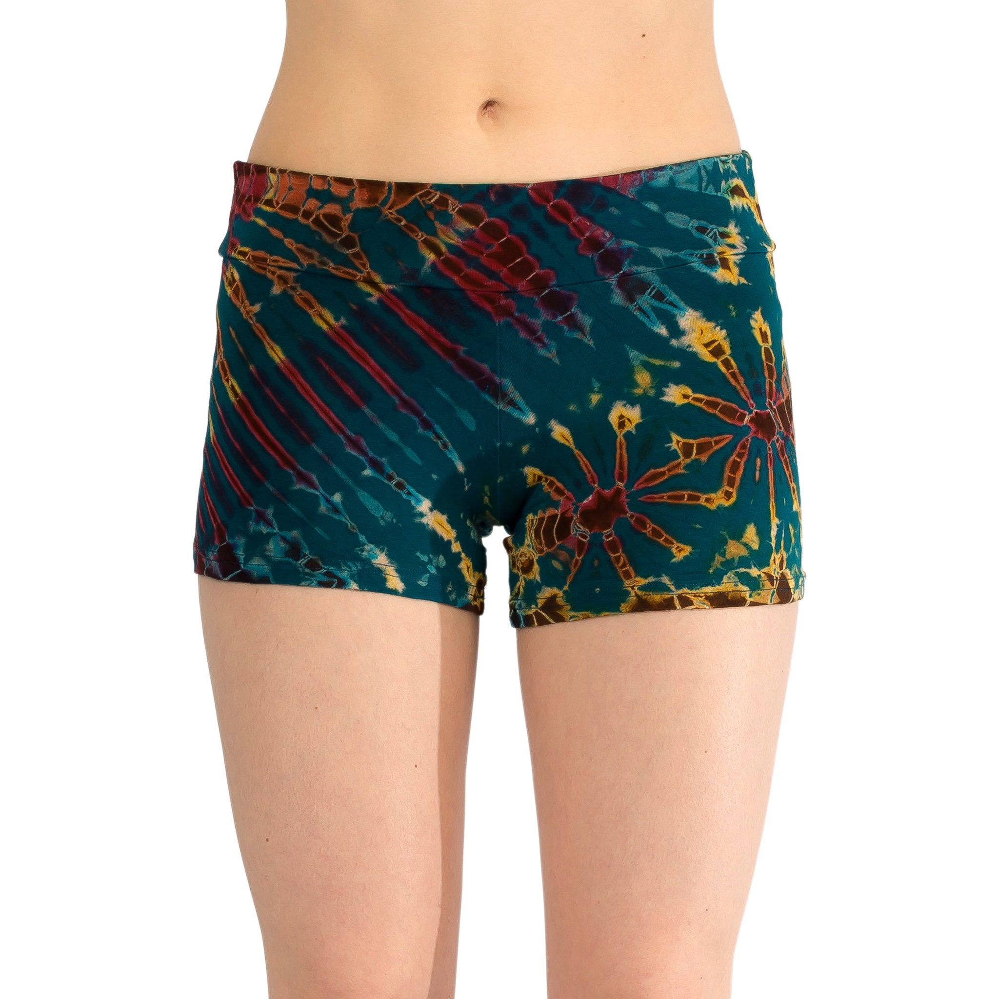 Teal Tie Dye Booty Shorts, Tie Dye Shorts Women, Rainbow Shorts, Yo...