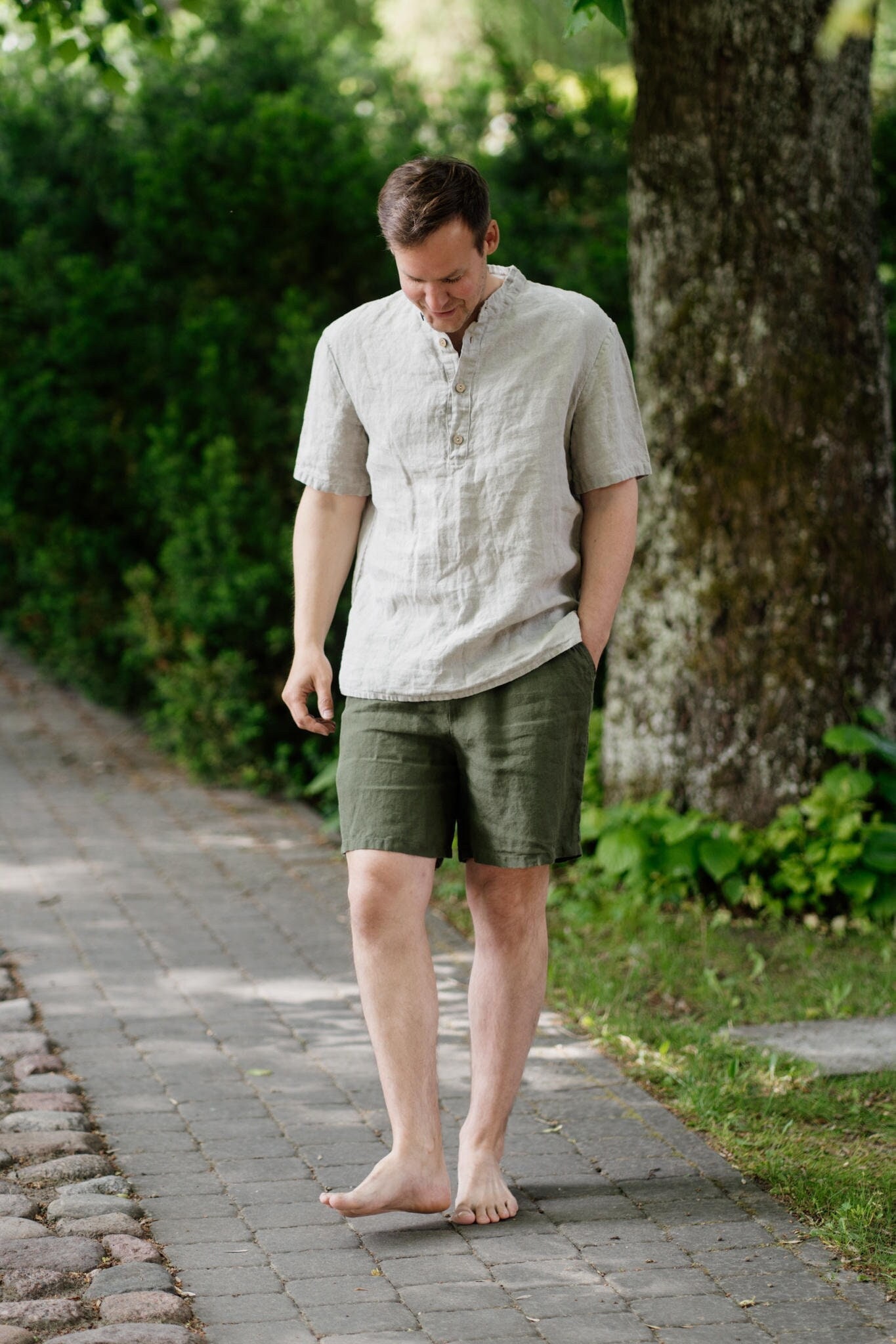 MEN'S LINEN SHORTS, Linen shorts men, Basic shorts, Natural linen s...