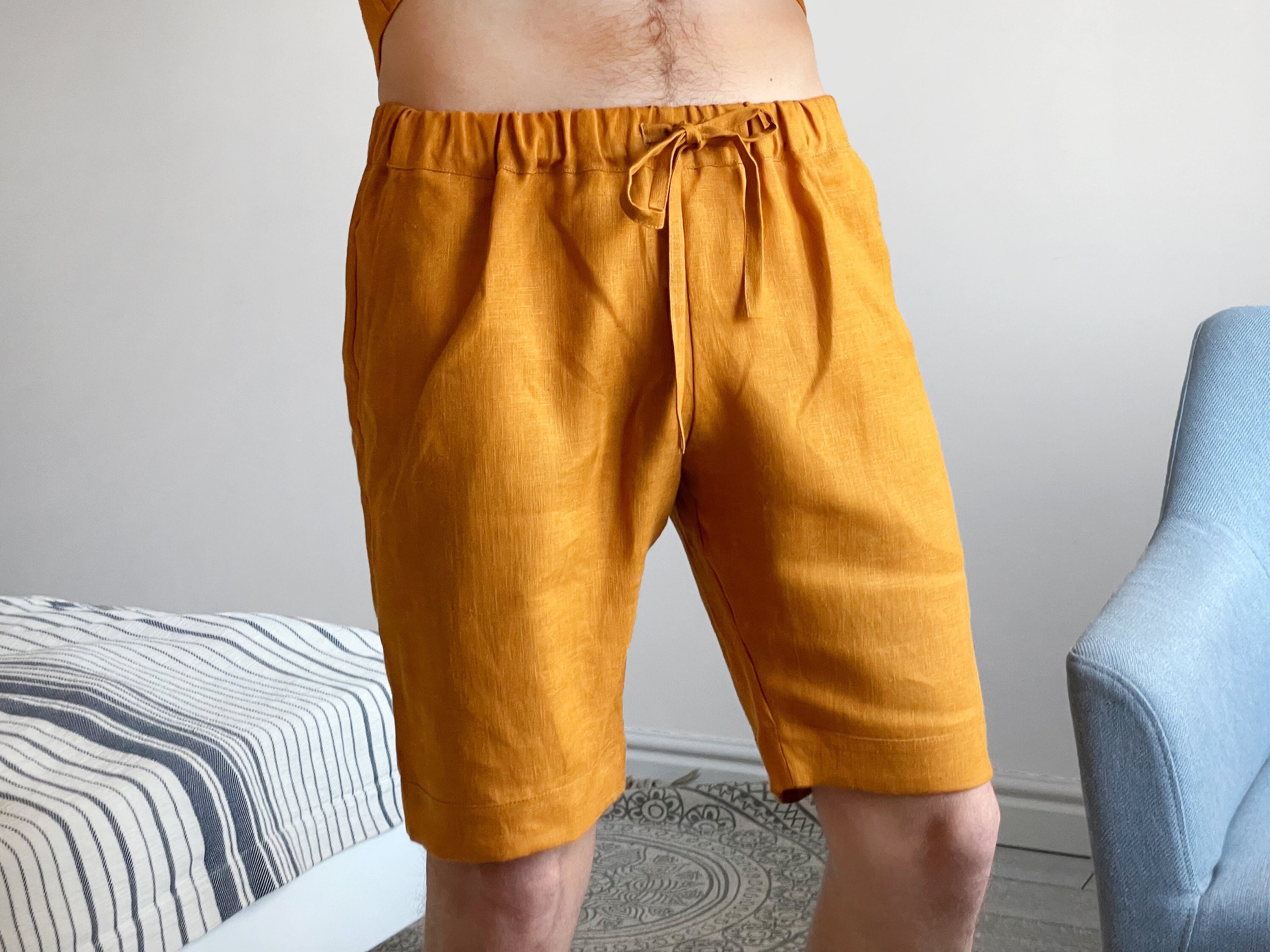 "Men's linen shorts. Color in the picture - Saffron. Loose-fit shorts are made from 100% Linen ...