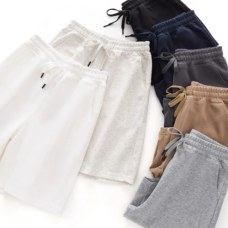 Heavy Cotton Shorts Men's Summer American Loose Large Size Casual Sports Breathable Solid Color Swea...