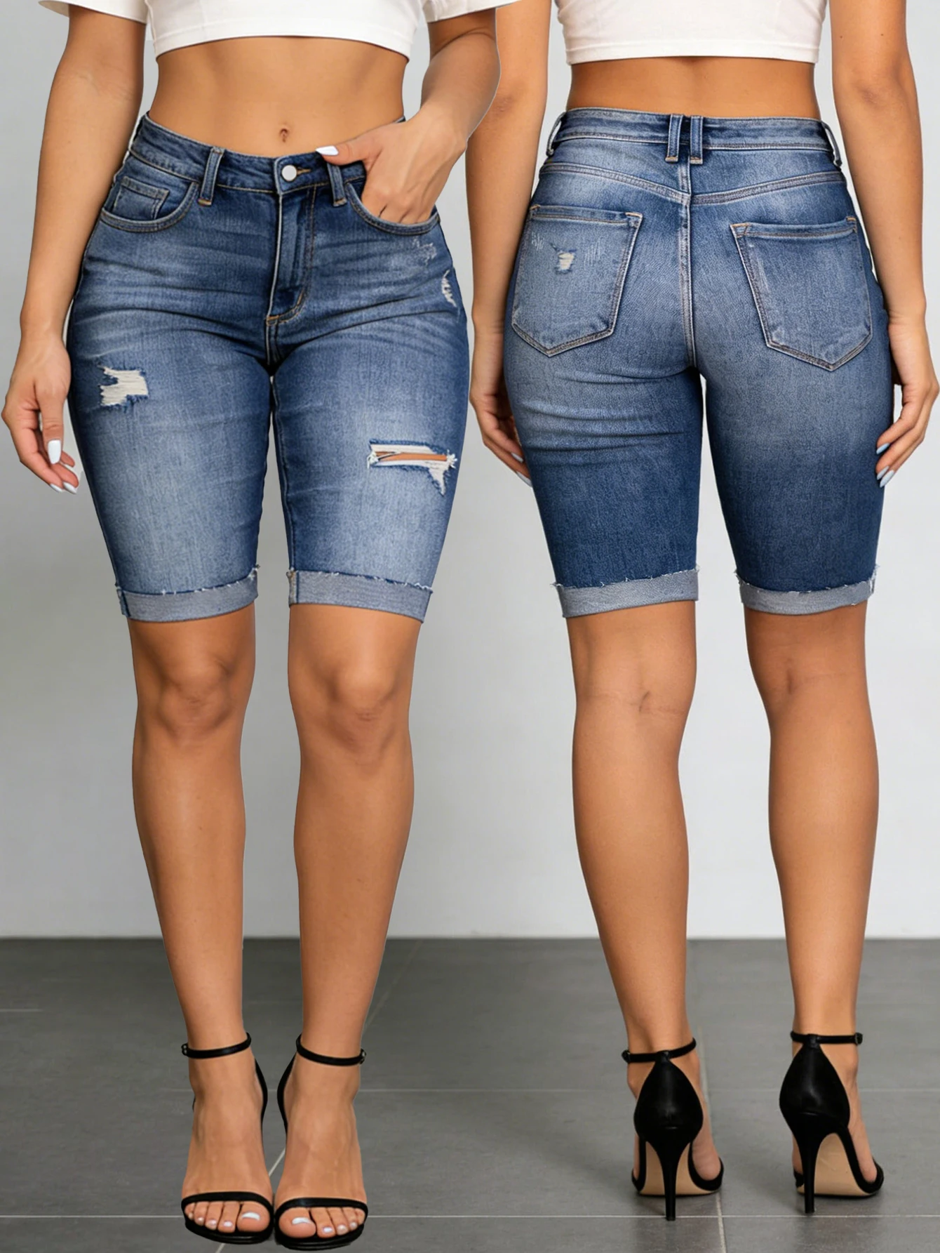 New Women's Jeans Ripped Denim Shorts - Stylish Casual 5-Inch Jean ...