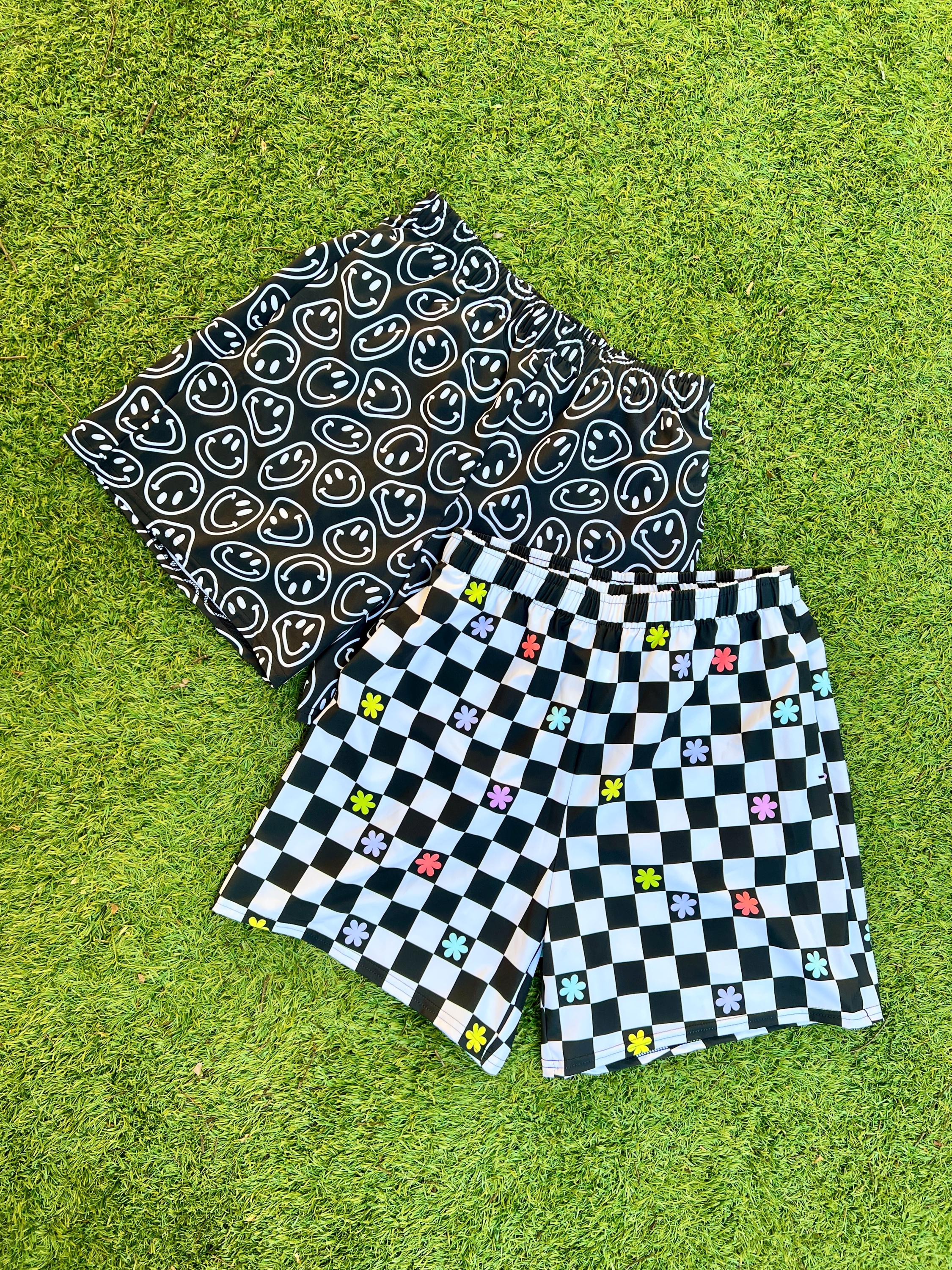 B&W Checker Smile Men's Shorts | edm shorts rave outfit mens mu...