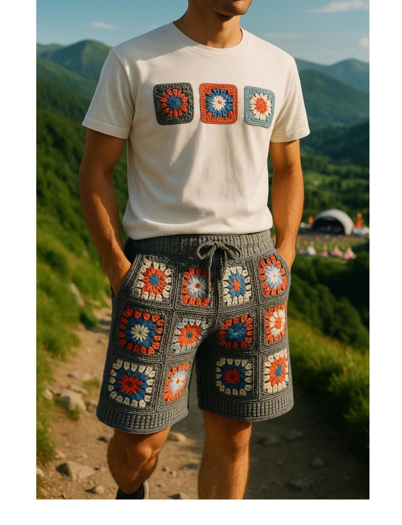 Crochet Shorts and T-shirts Mens, Crochet Festival Shorts and T-shi...