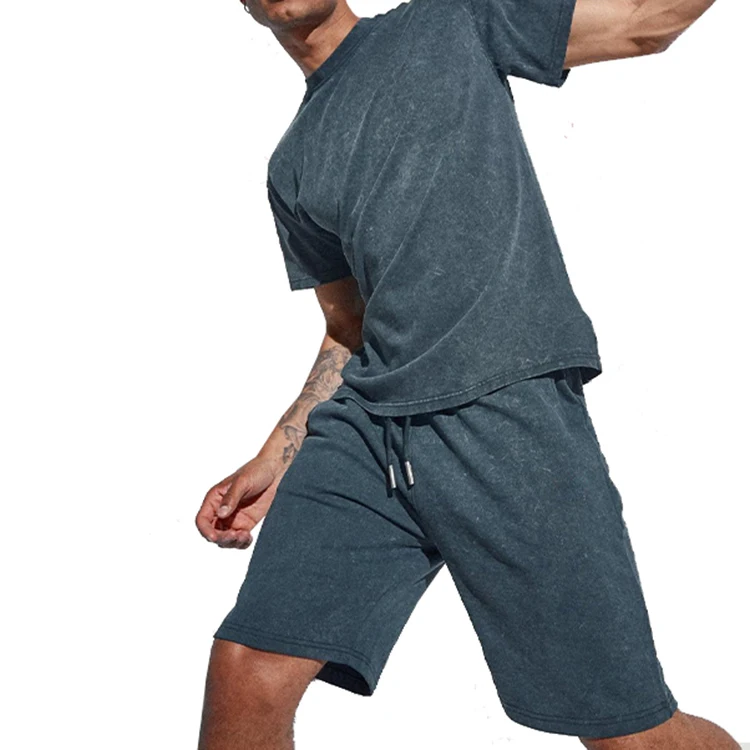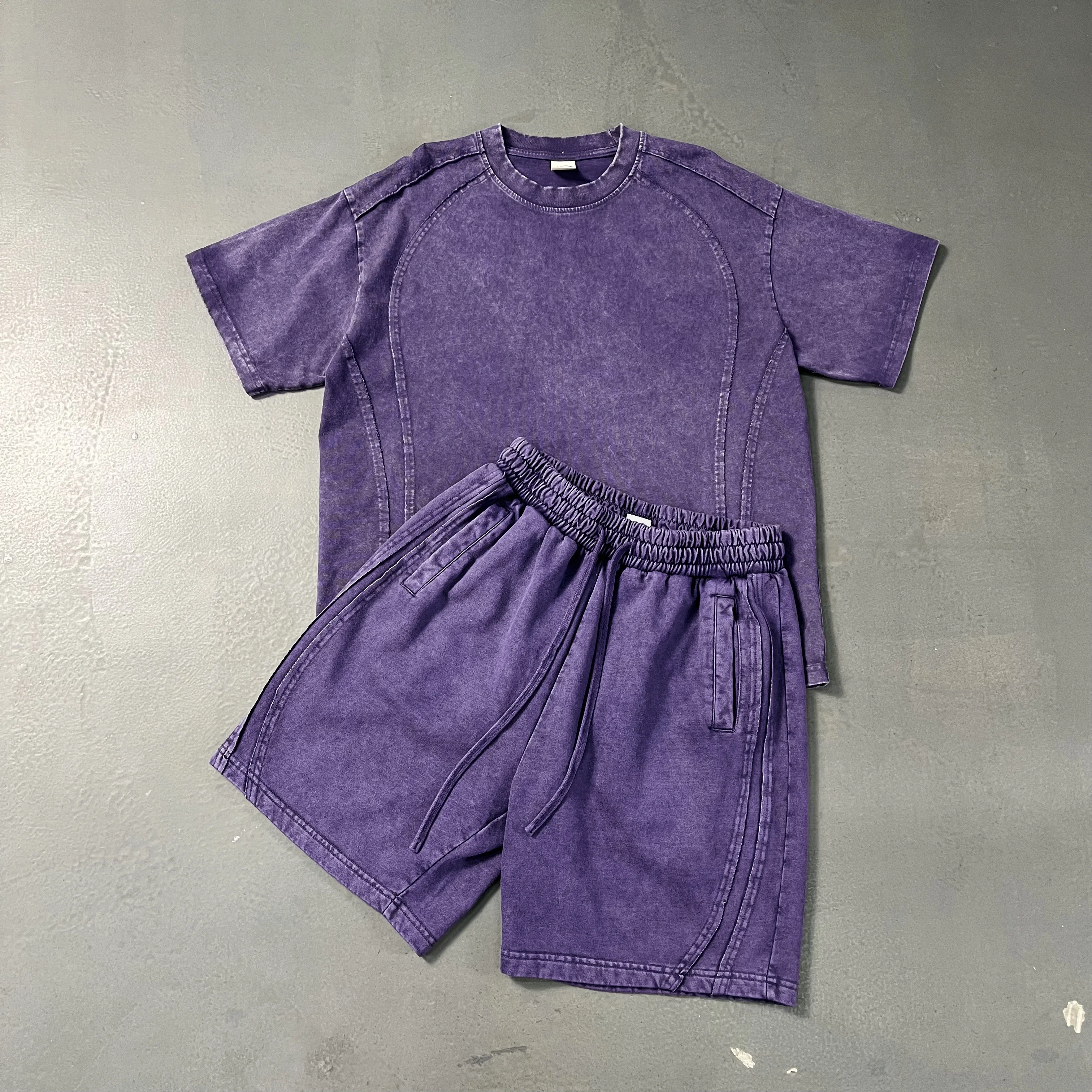 Summer Short Sleeve Mens T-shirt Shorts Set Streetwear 350gsm Acid ...