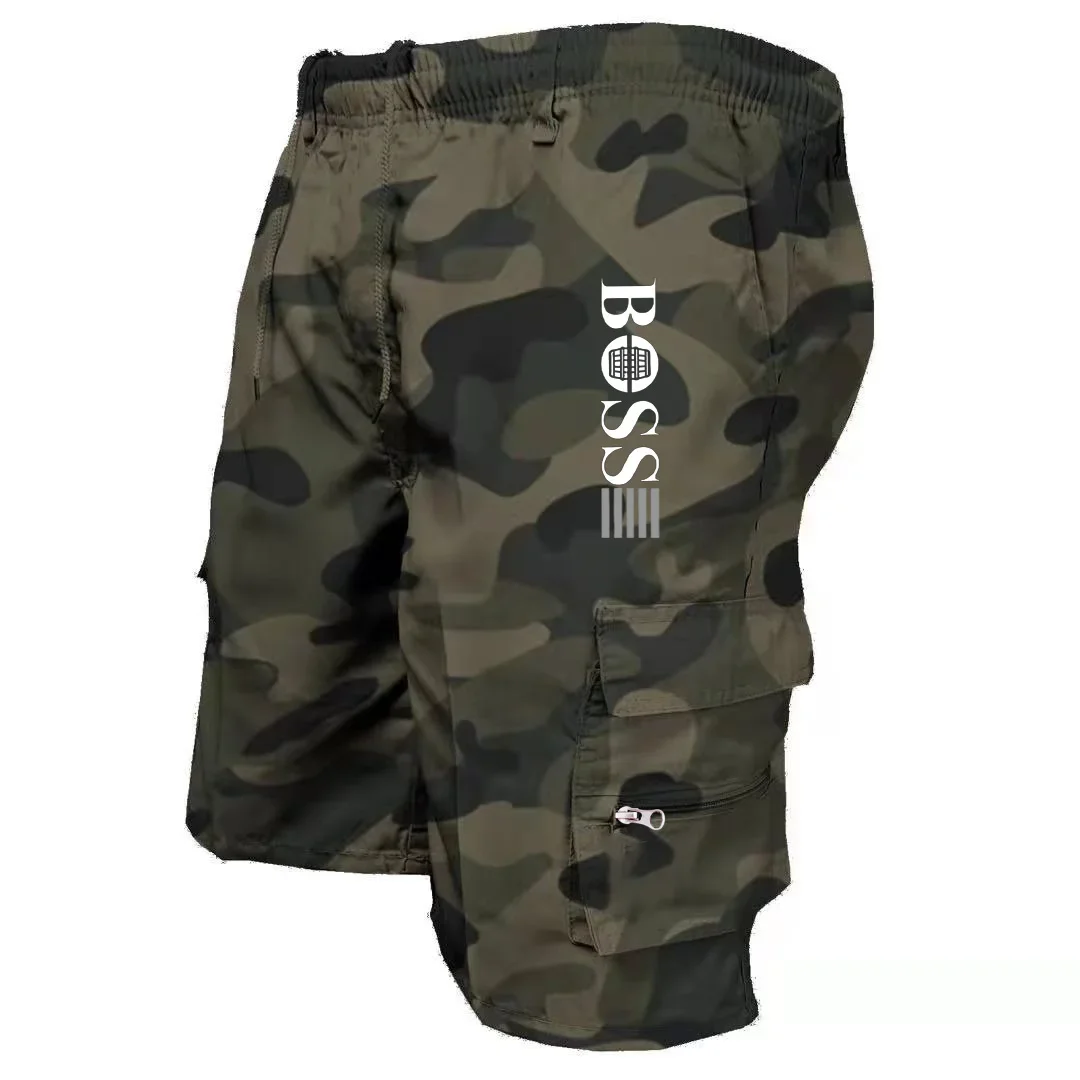 Men's outdoor elastic multi-pocket work shorts, summer casual street style jogging shorts, loose wor...