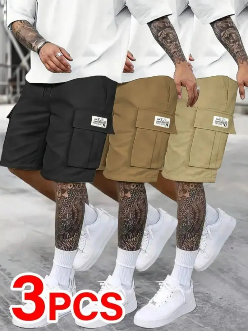 Lightweight Work Shorts] 3-Pack Lightweight Men's Solid Color Work Shorts - Flip Pocket Fashion Outd...