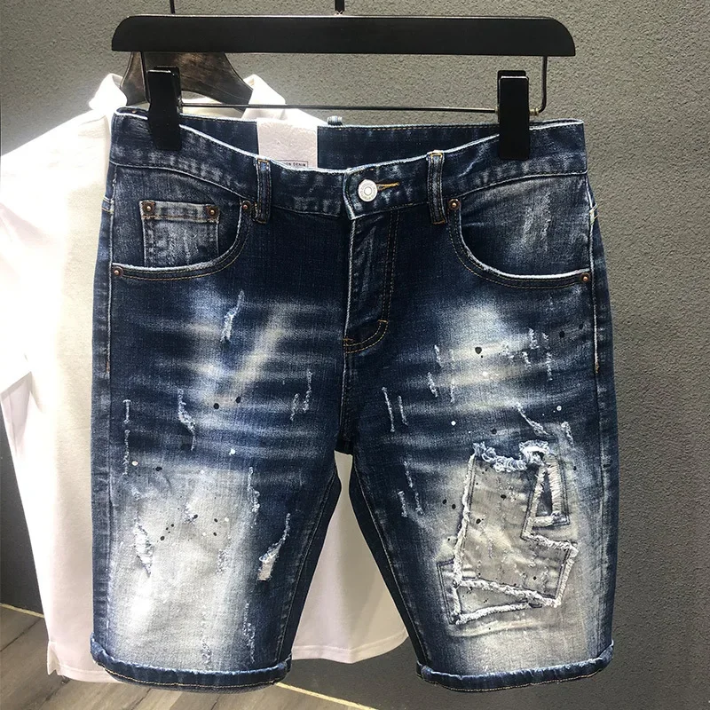 Men Fashion Denim Shorts Holes Jeans New Summer Male Blue Ripped Je...