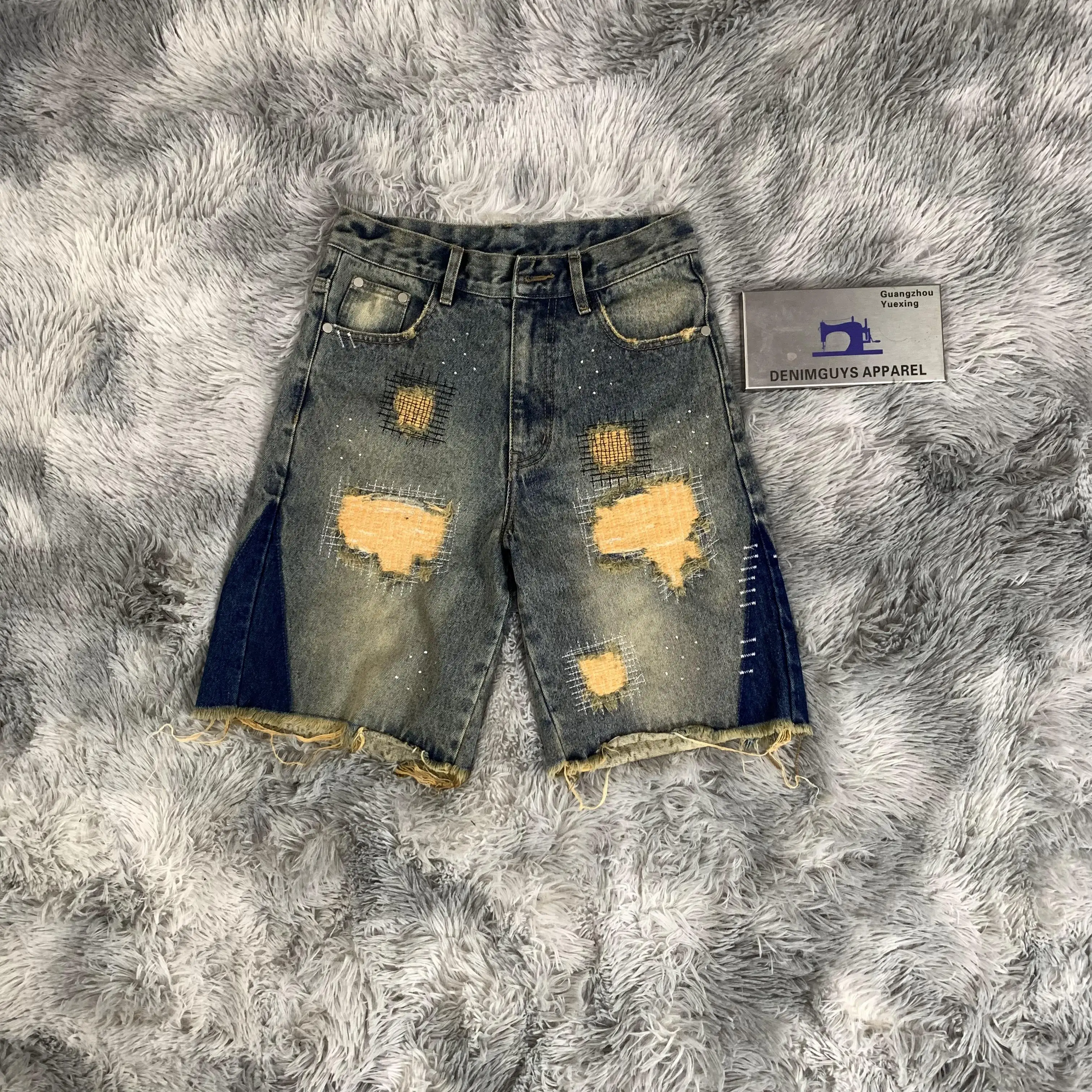 Crochet Denim Shorts Mens, Men's Denim Jean Shorts, Granny Square Ripped Shorts, High Street Denim S...