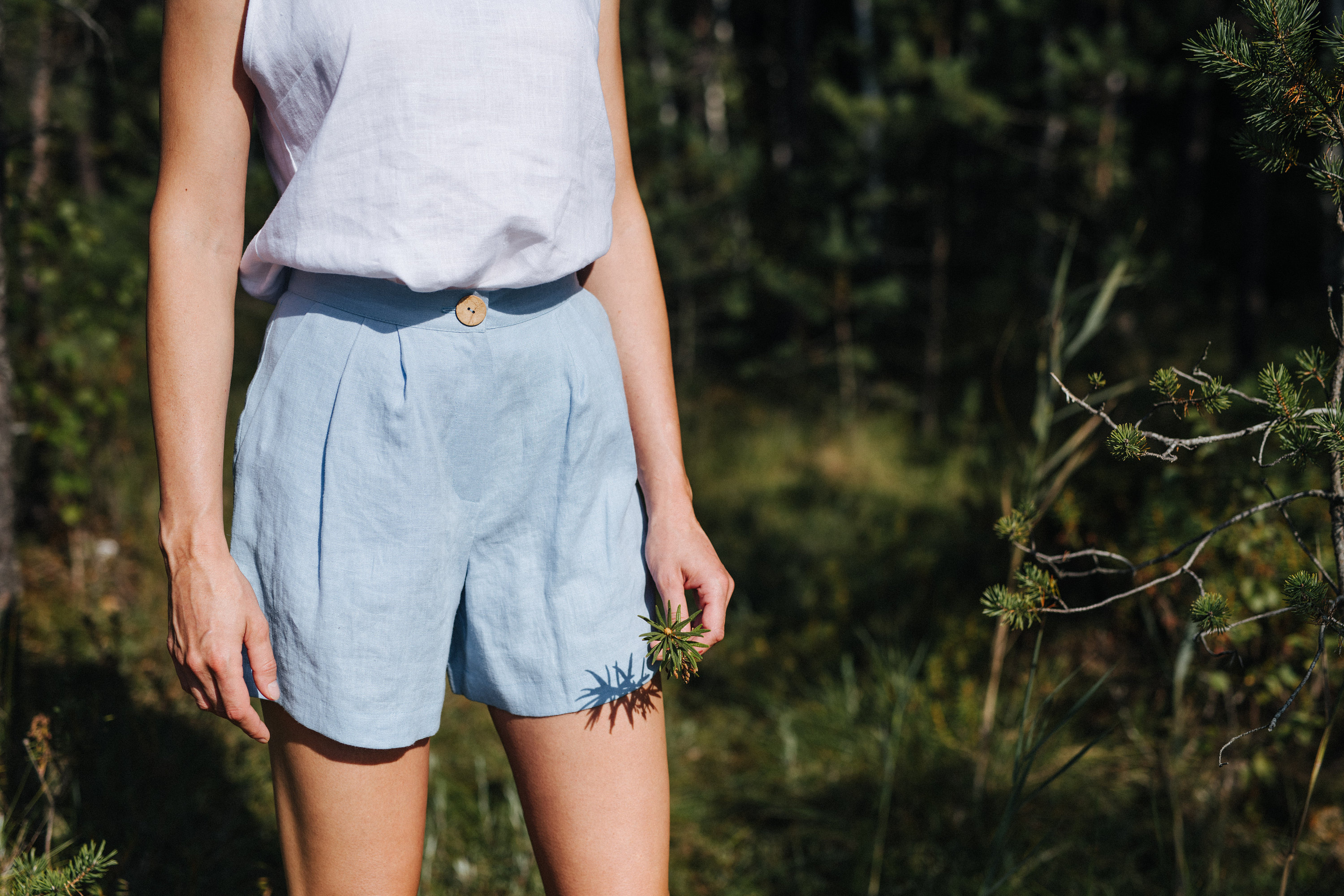 "Abu Dhabi shorts, High waisted shorts, Women linen shorts, Women summer shorts, Blue linen sho...