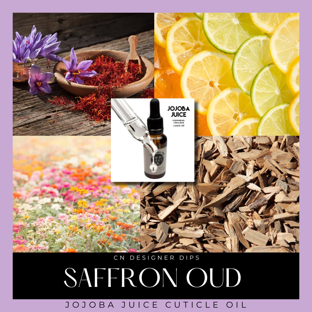 Cuticle Oil - Jojoba Juice SCENT: Saffron Oud is a divinely addictive scent with opening notes of br...