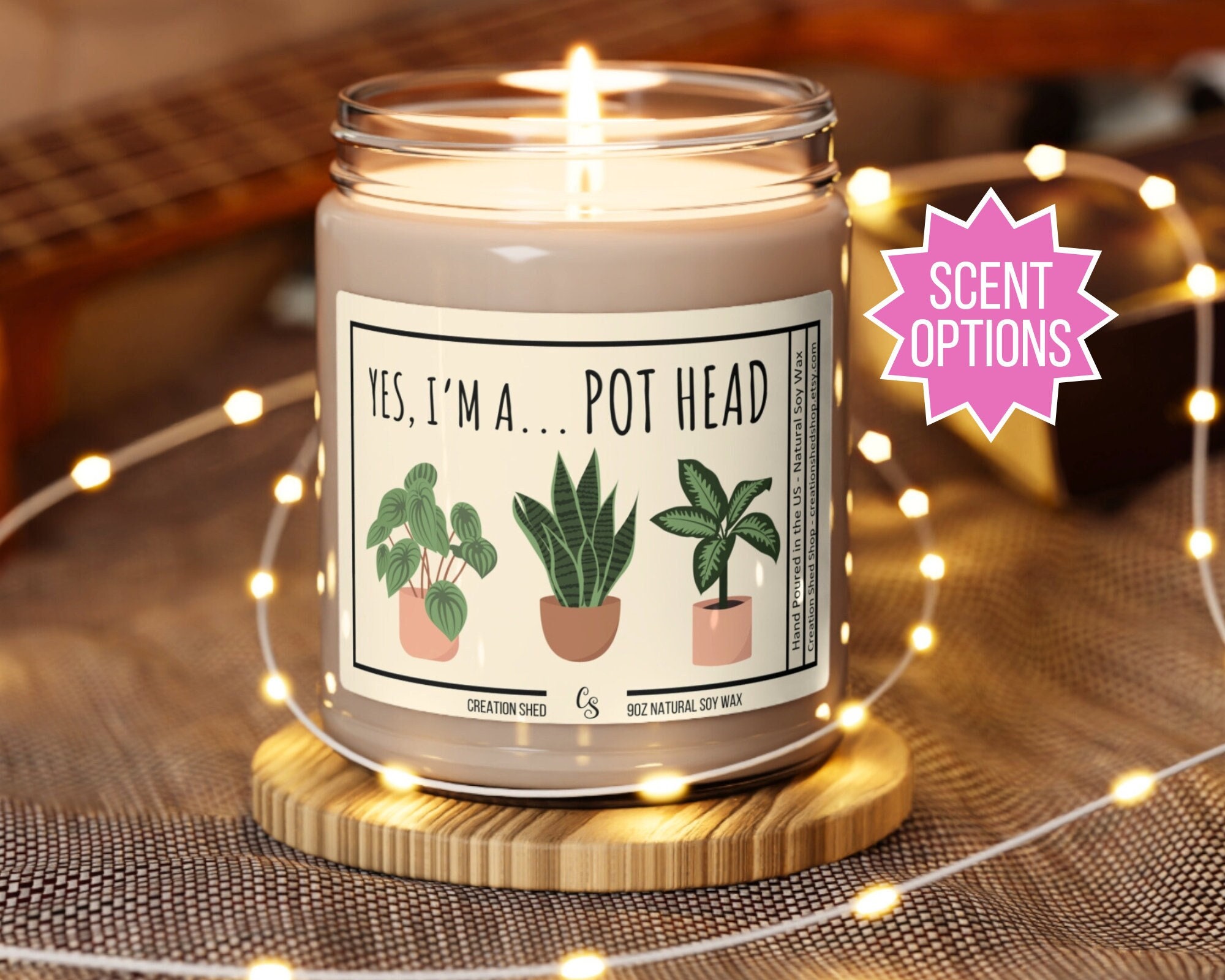 Pot Head Plant Lover Gift Plant Mom Crazy Plant Lady Candle for Pla...