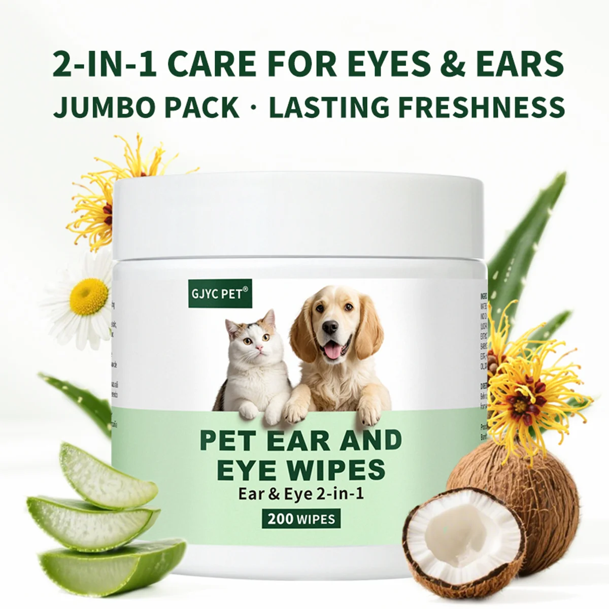 Pet Wipes for Dogs & Cats Eye & Ear 2 in 1 Gentle Non-irritating Grooming Wipes Deep Cleansi...