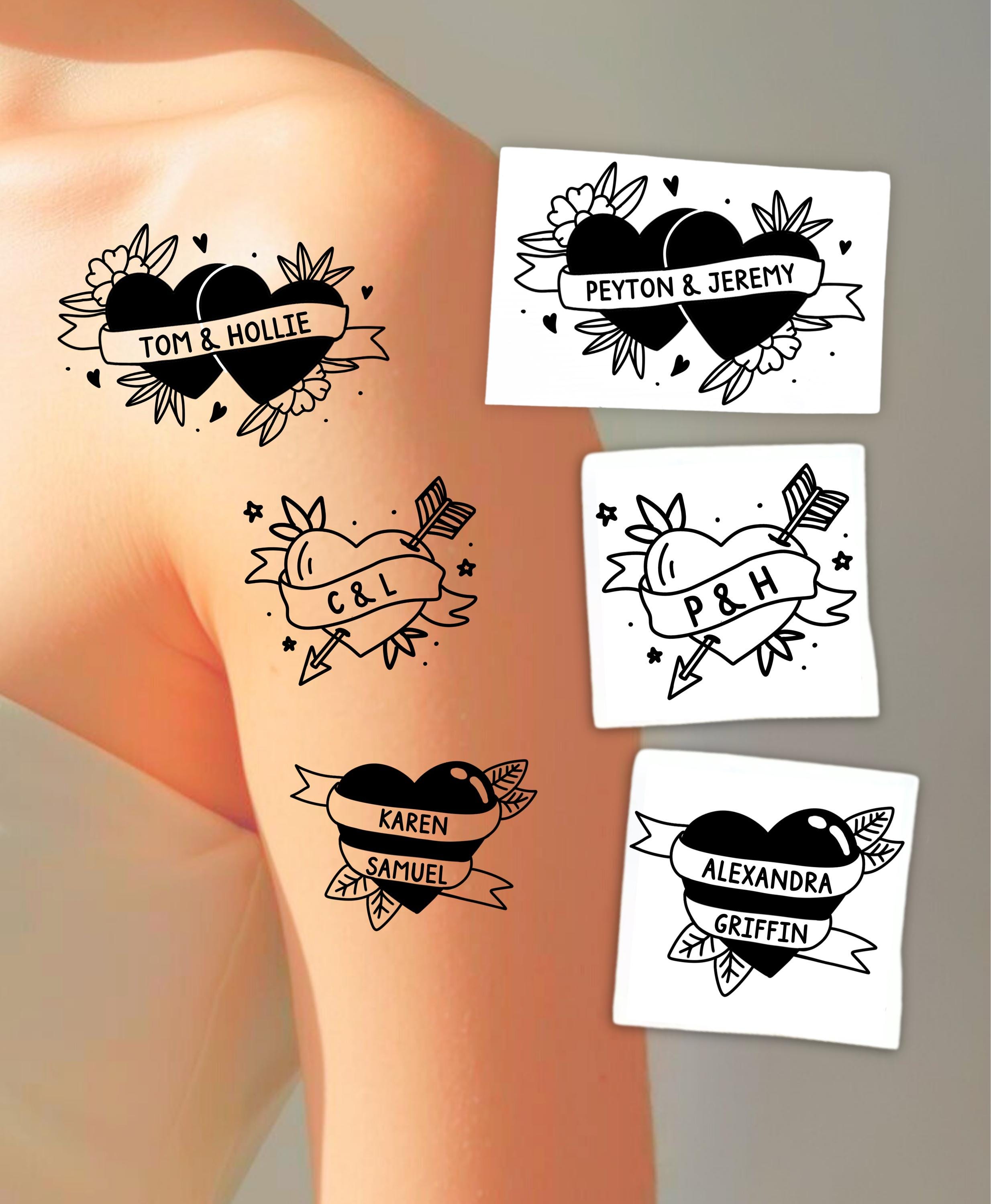 Custom Fine Line Retro Heart Temporary Tattoo Custom, Wedding Tatto...