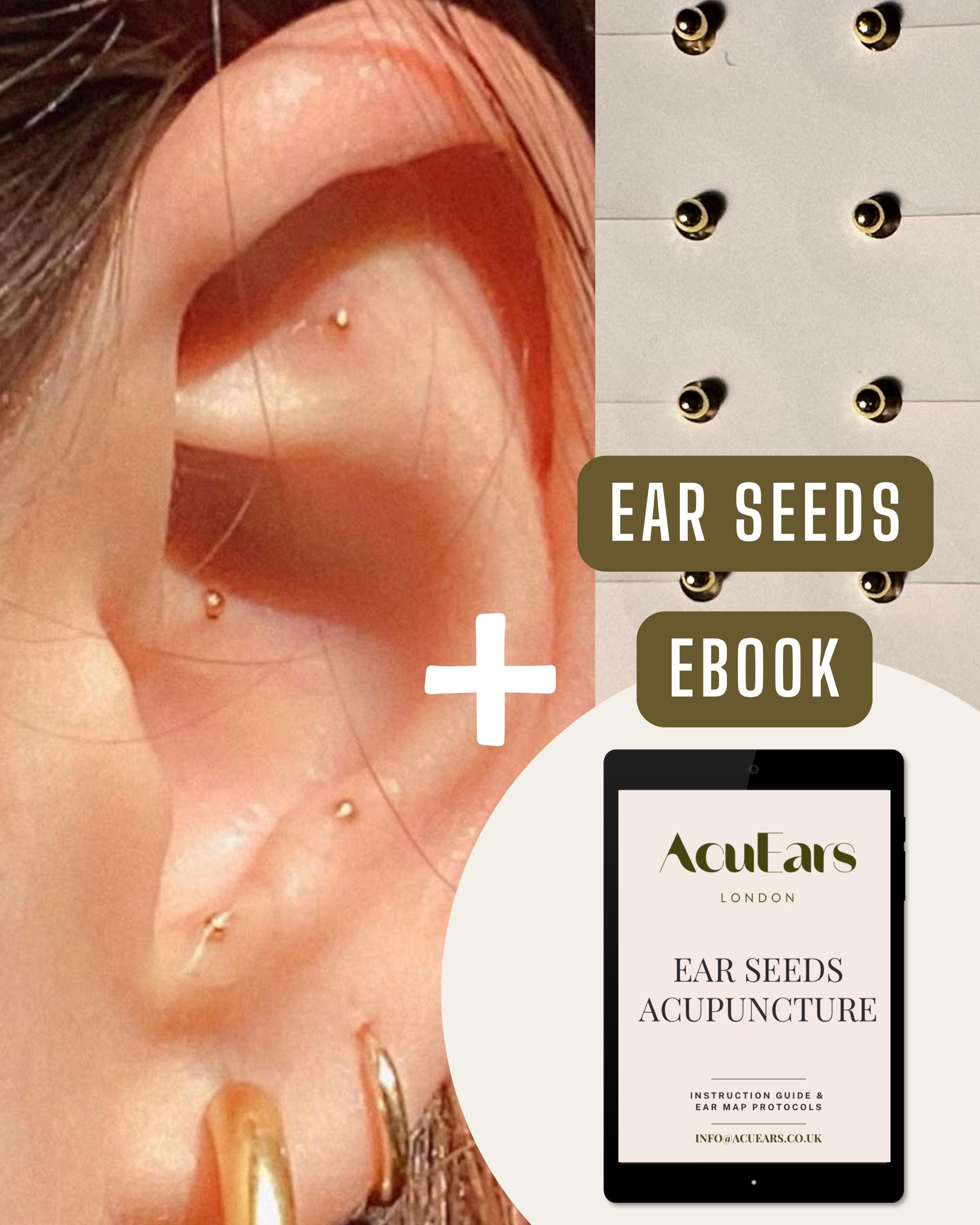 KIT - GOLD/SILVER Ear Seeds + PDF Ebook on Acupressure with 80 Ear Maps Discover a natural and effec...