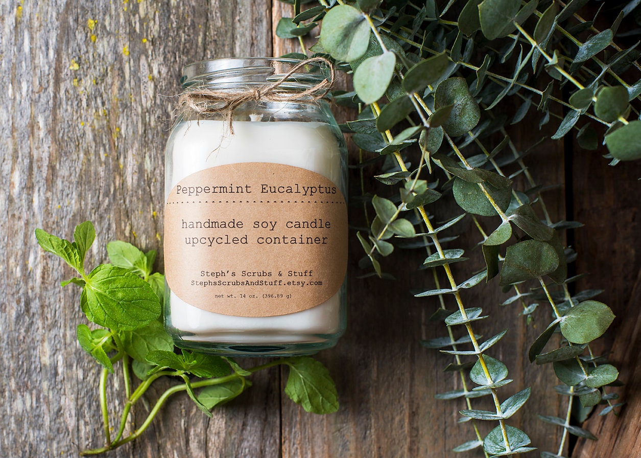 Peppermint Eucalyptus Soy Candle, Peppermint Candle, Eucalyptus Can...