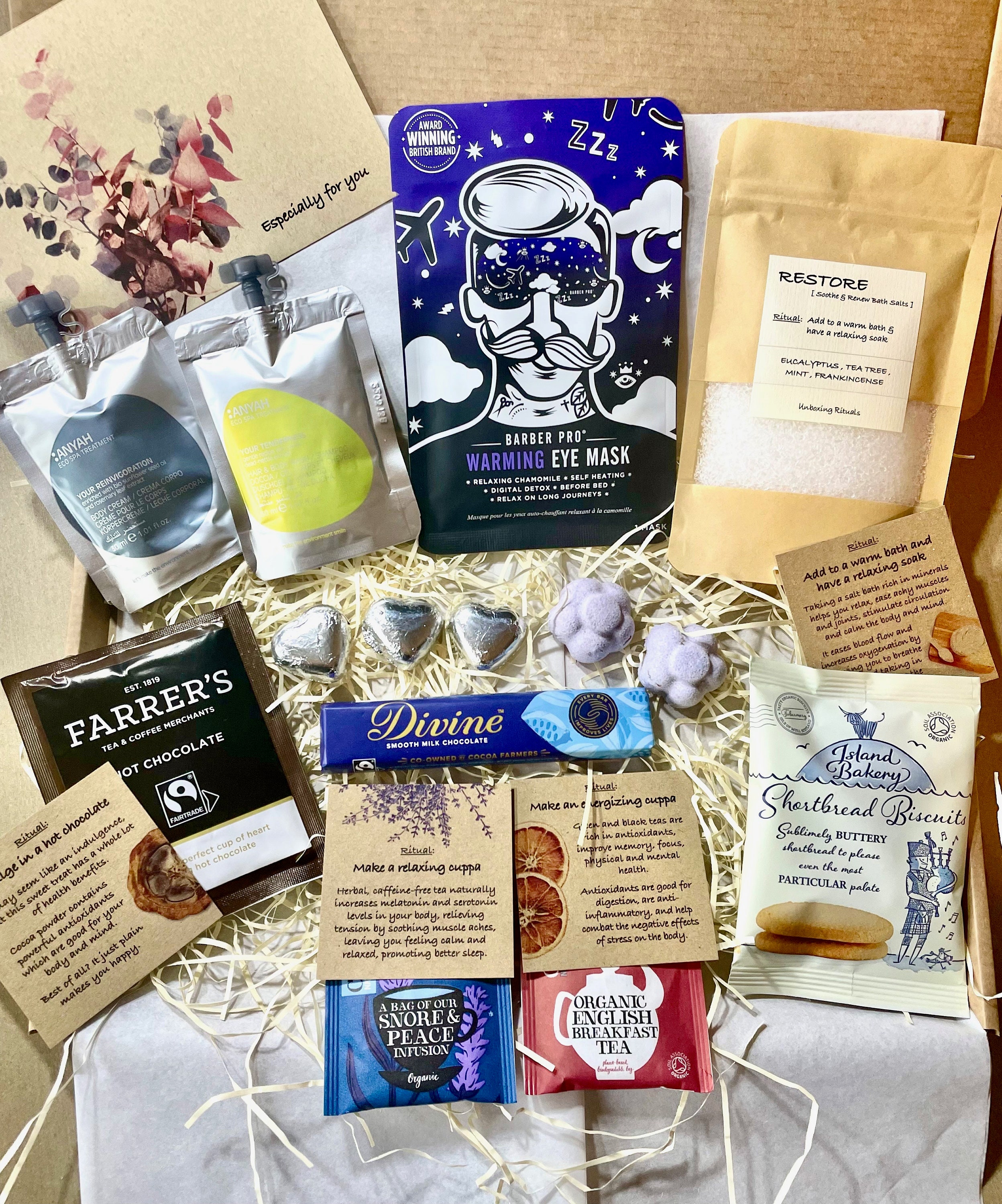 "Thoughtful gift package carefully put together to help you or your loved ones, to pause, relax...