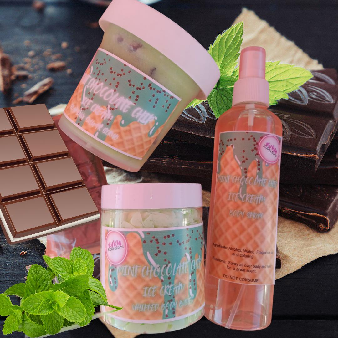 Mint chocolate chip, chocolate mint, mint chocolate chip whipped bo...