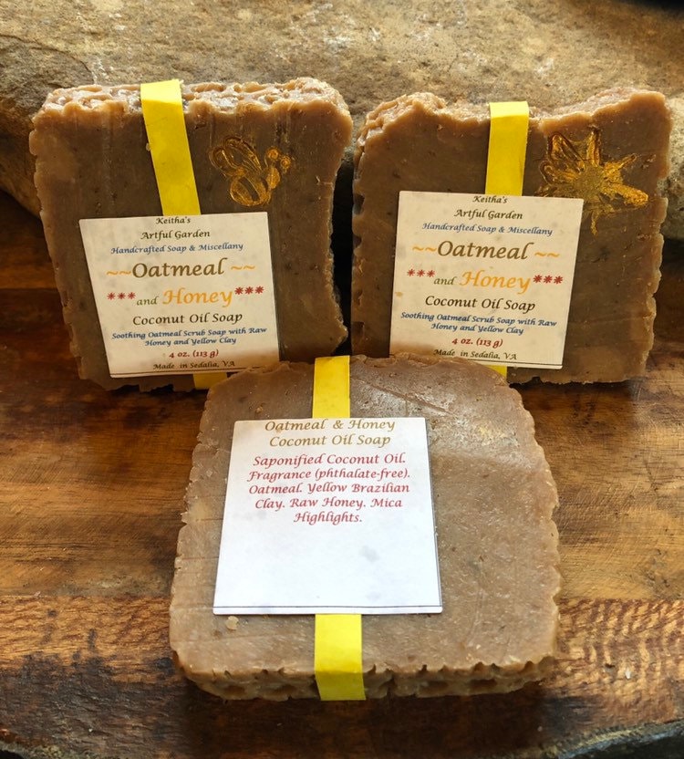 Oatmeal and Honey Coconut Oil Soap 4 oz. Soothing Oatmeal scrub soa...