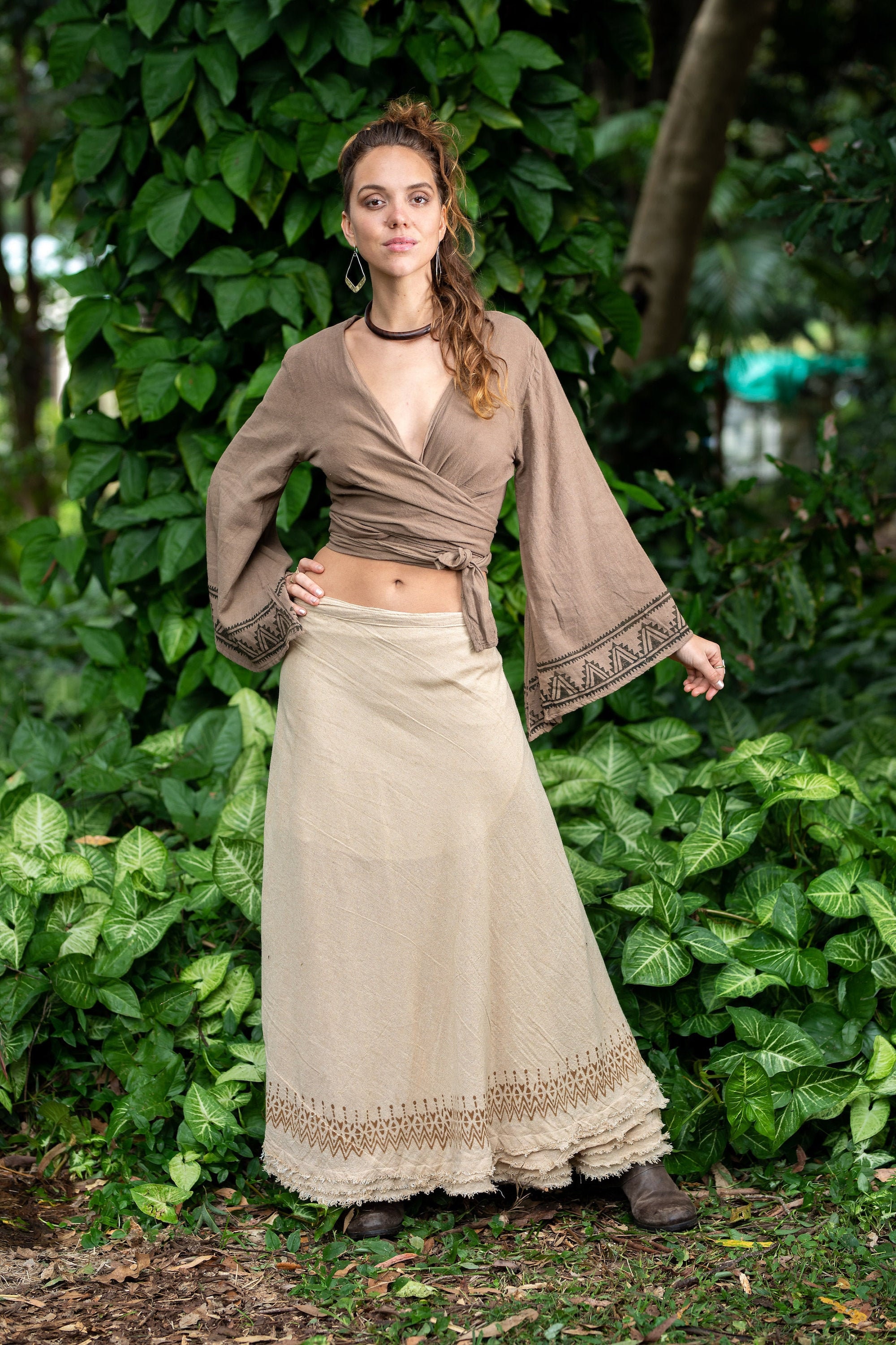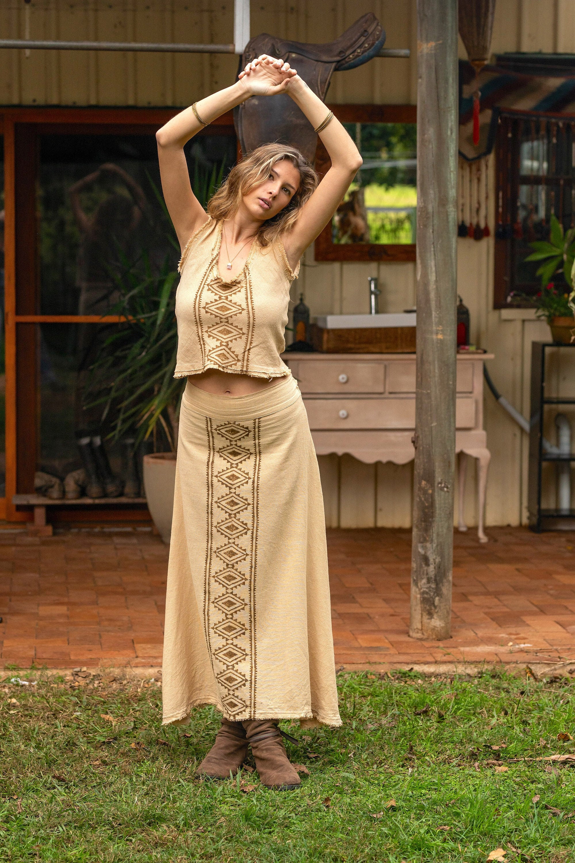 Long Tribal Skirt, Raw Cotton Ethnic Skirt, Earthy Clothing, Summer...