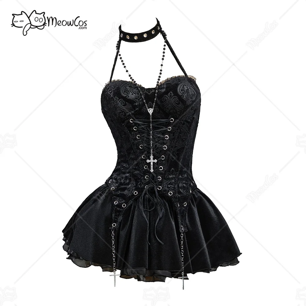 MEOWCOS Women's Misa Gothic Black Corset Skirt Set Lace-up Halter C...