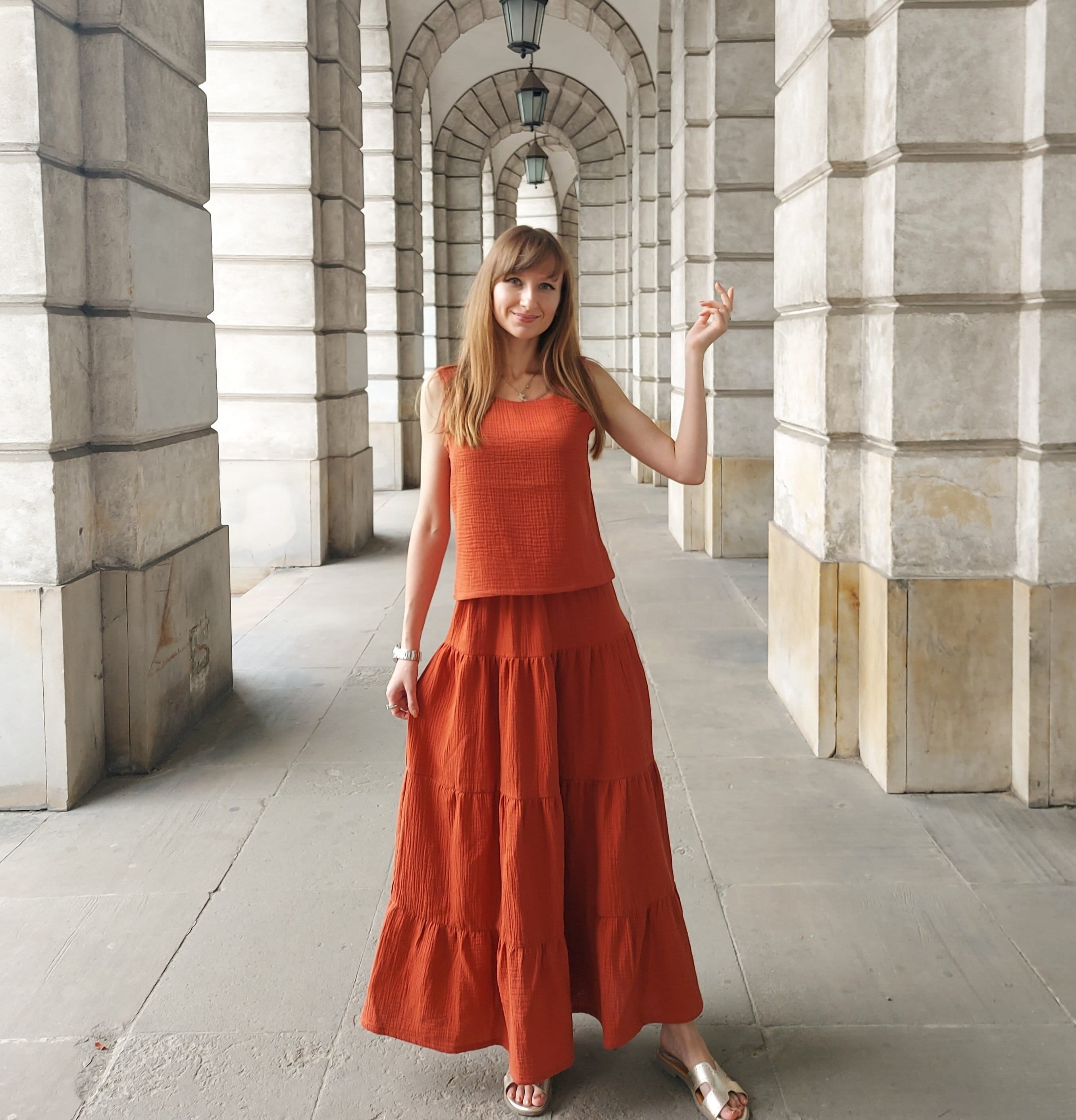 Cotton muslin top and skirt set, Two piece maxi skirt set, Muslin m...