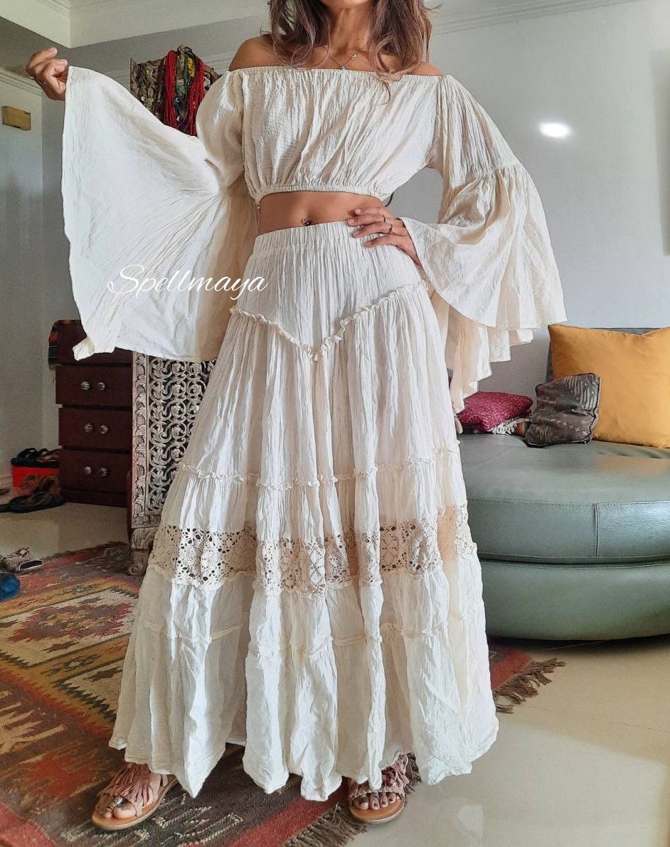 Boho set 100% cotton. Color Off white beige for top and skirt ( color same as the last photo) Skirt ...