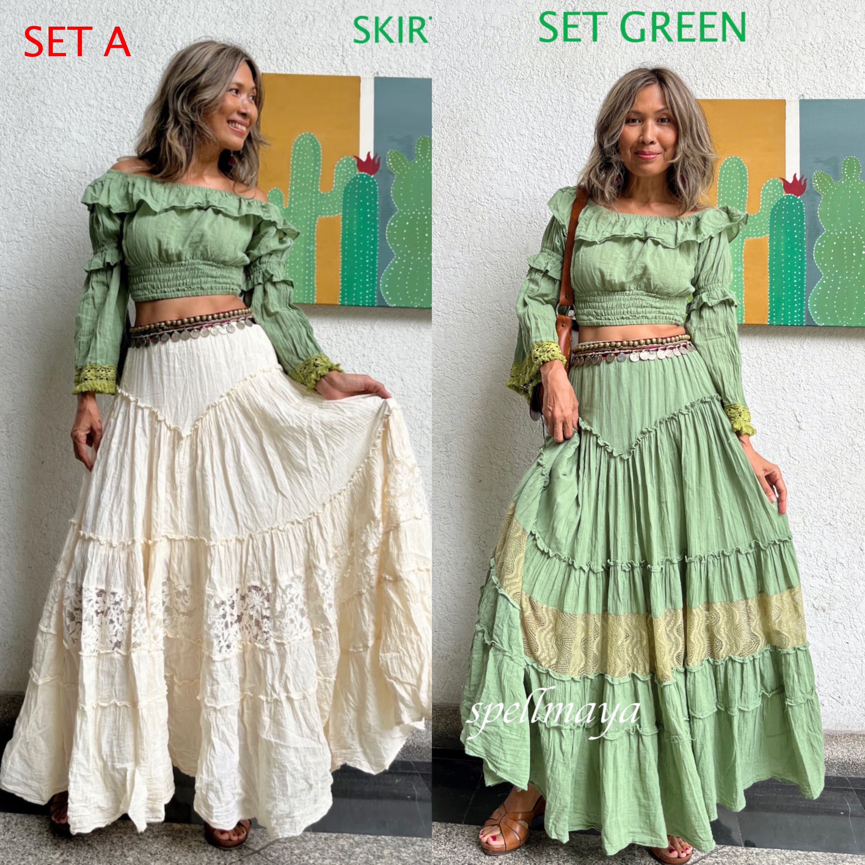 Boho Set of top and skirt, Flamenco Skirt,Boho Ruffle Skirt,Materni...