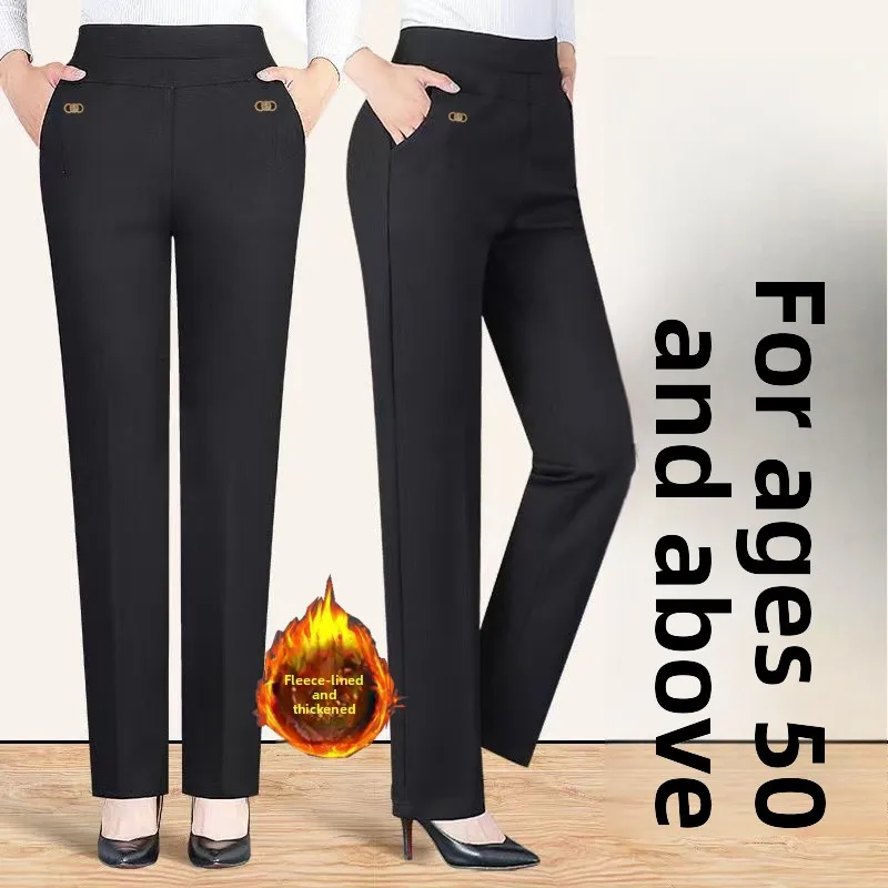 Women's Fce Lined Loose Casual Pants High Waist Elastic Straight Leg Mom Jeans Autumn Winter plus Si...