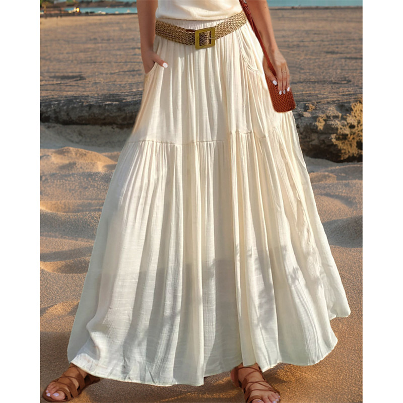 Women's Asian Size Swing Linen Skirts Casual Summer Midi High Waist...
