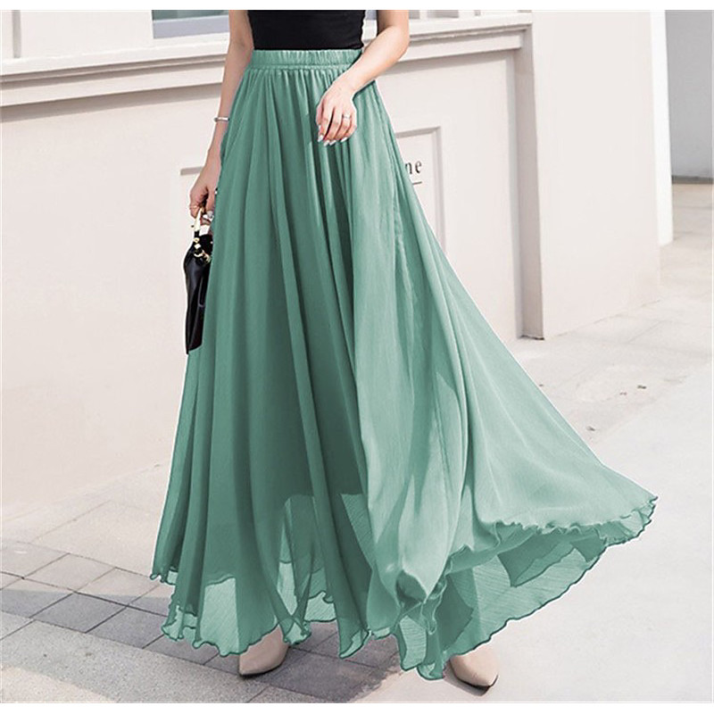 Women's Skirt Swing Work Skirts Long Skirt Maxi Skirts Chiffon Soli...