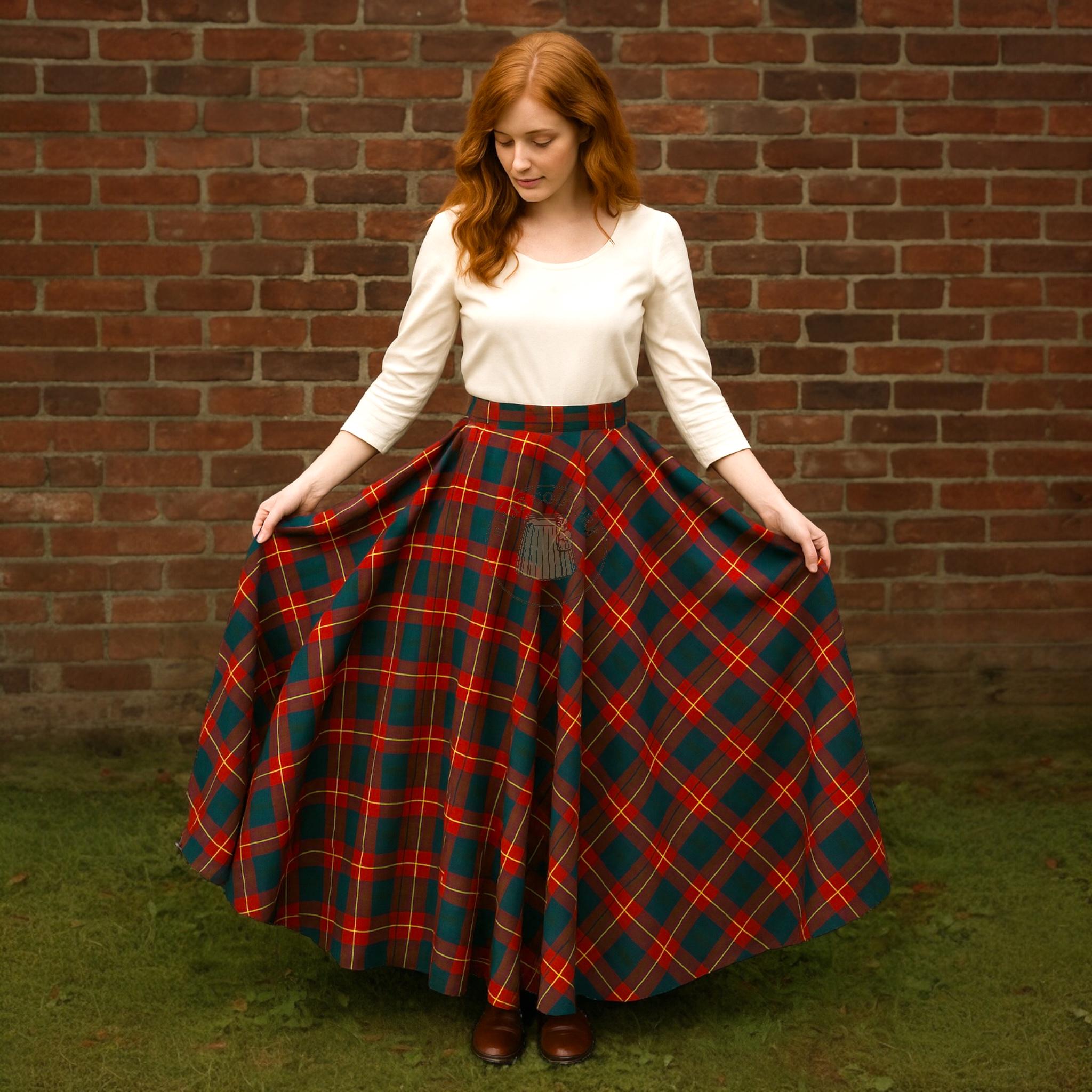 Ladies Full Length Tartan Maxi Circle Skirt Scottish Plaid Wool Skirt Custom Clan Tartan Women's Kil...