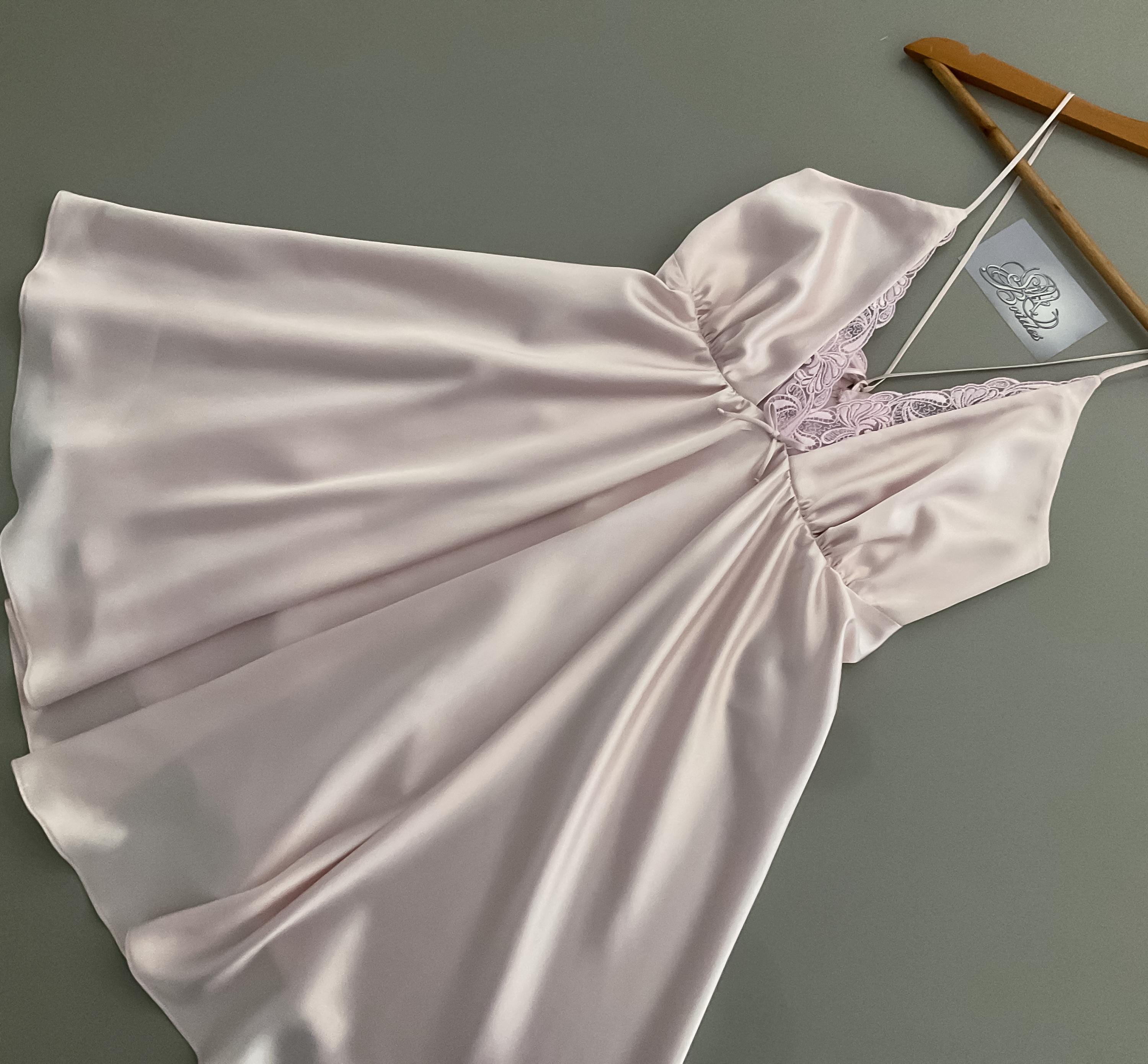 Nightgown Babydoll with crossover straps, White Satin Short Nightgo...