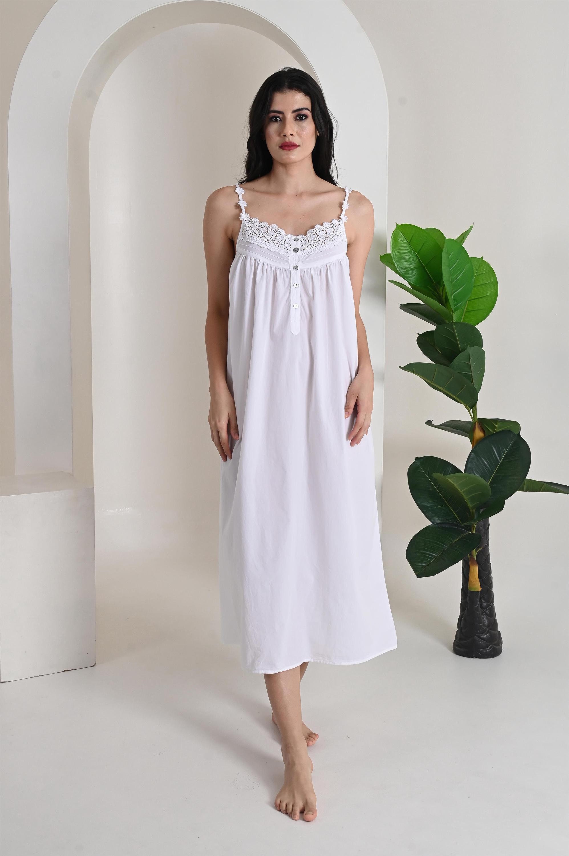 "Drift into comfort with this beautifully handcrafted nightgown made from 100% pure cotton -- s...