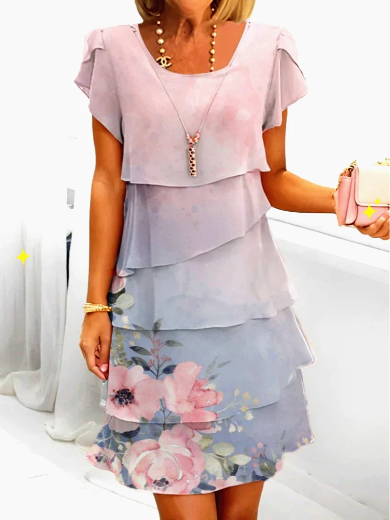 Women Loose Holiday Ruffles Befree Short Sleeve Midi Dress Large Big Summer Midi Floral Casual Dress...