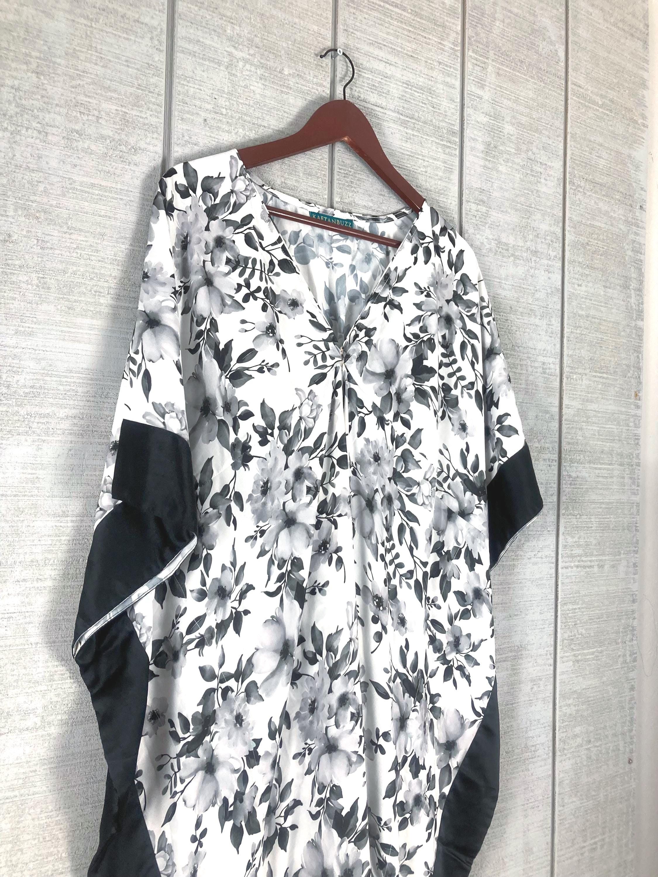 Monochrome Bloom Silk Satin Caftan Dress | Black & White Floral...