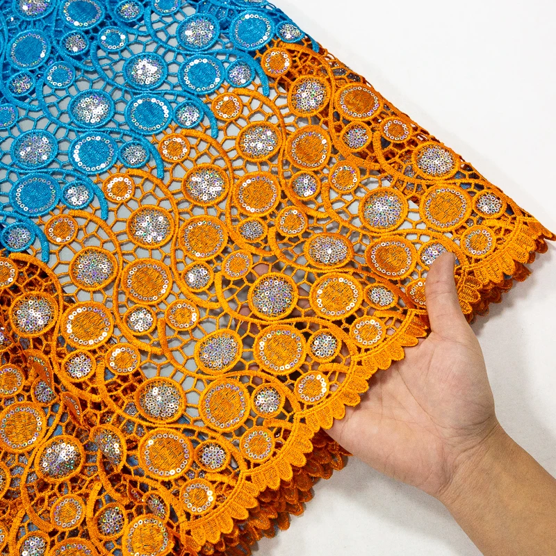 Nigerian Cord Guipure Lace Fabric 2024 High Quality 5 Yards French Water Soluble Sequin African Lace...