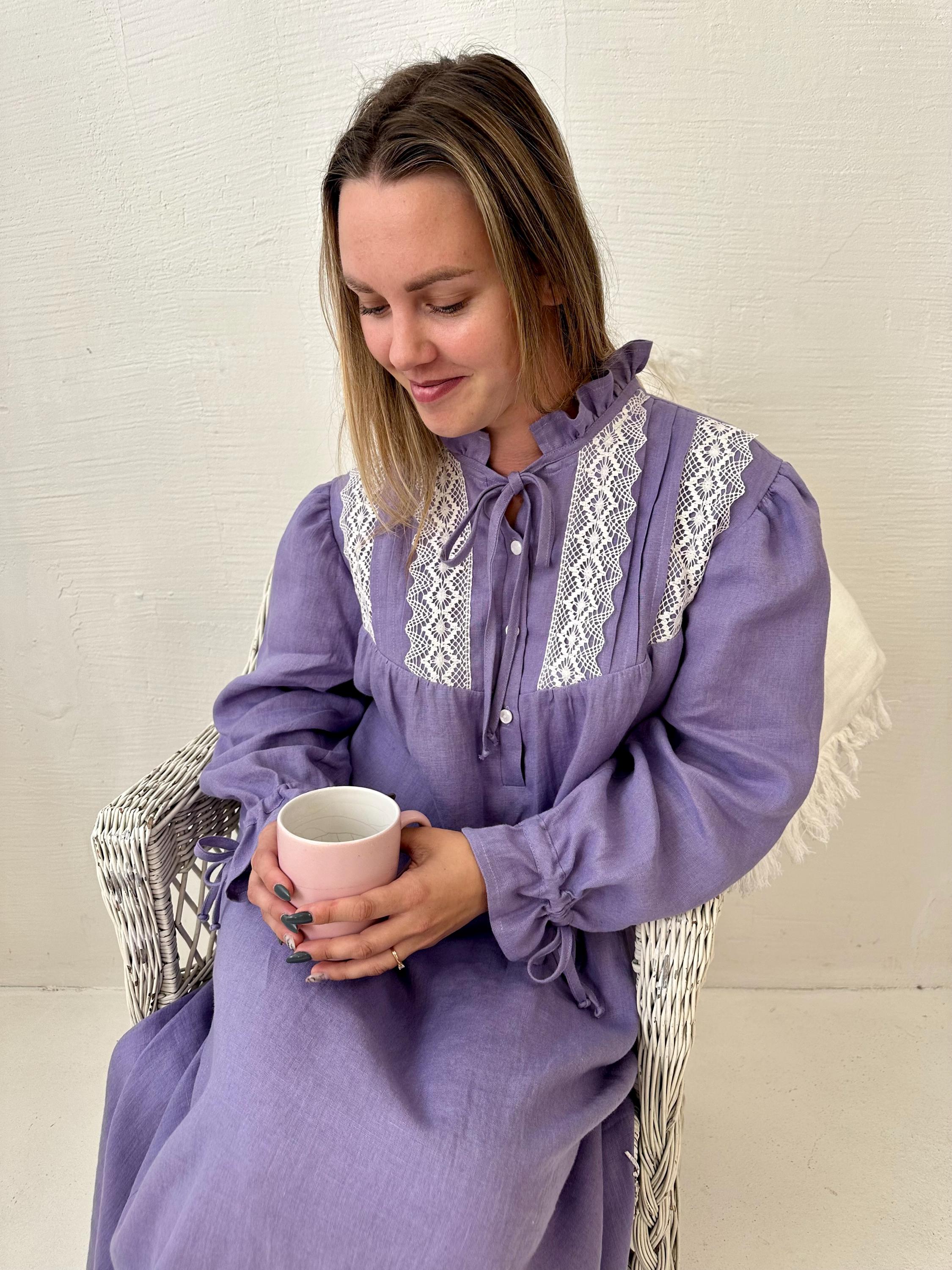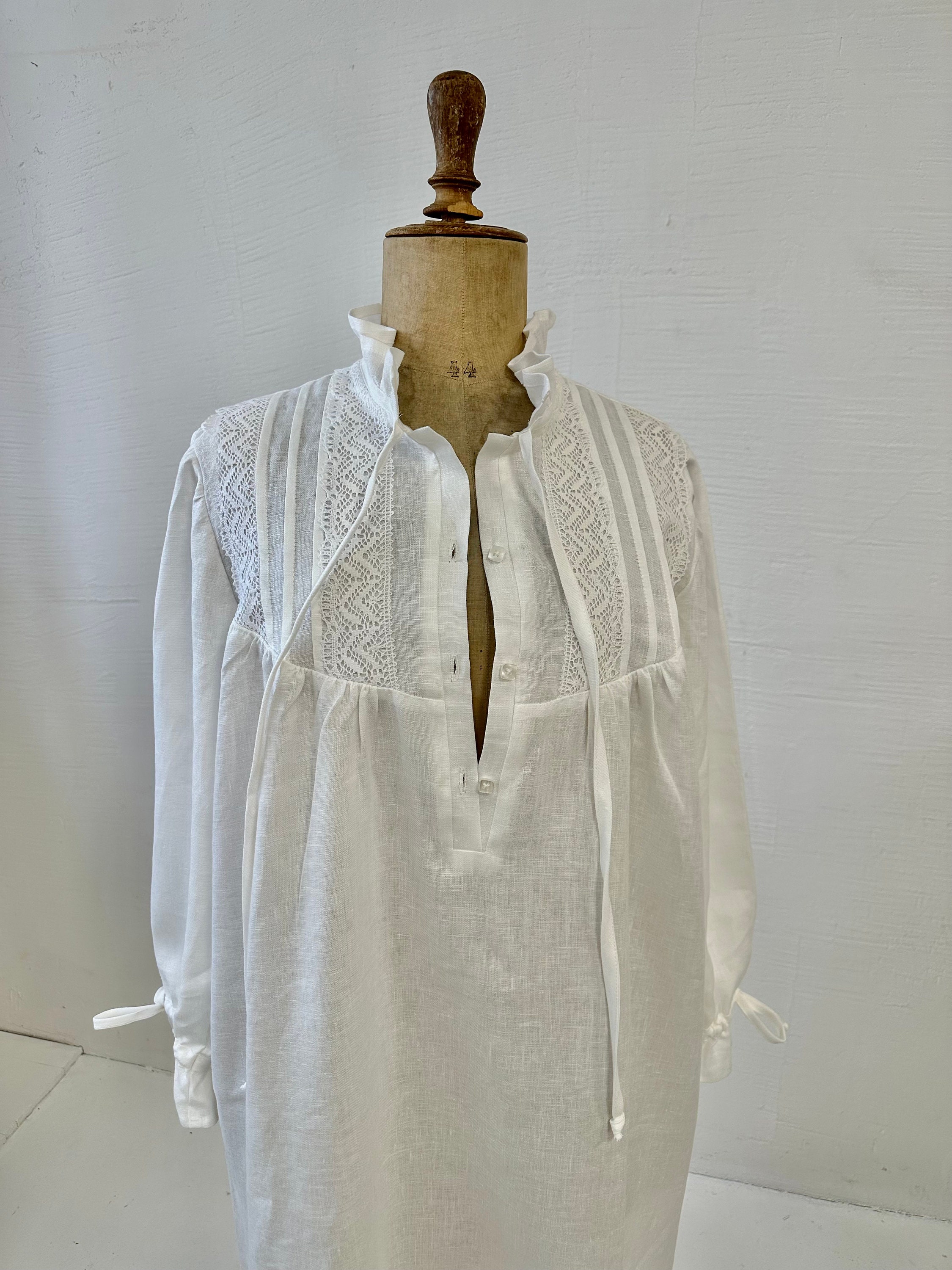 Linen nightgown breast feeding, Handmade Victorian nightgown with l...