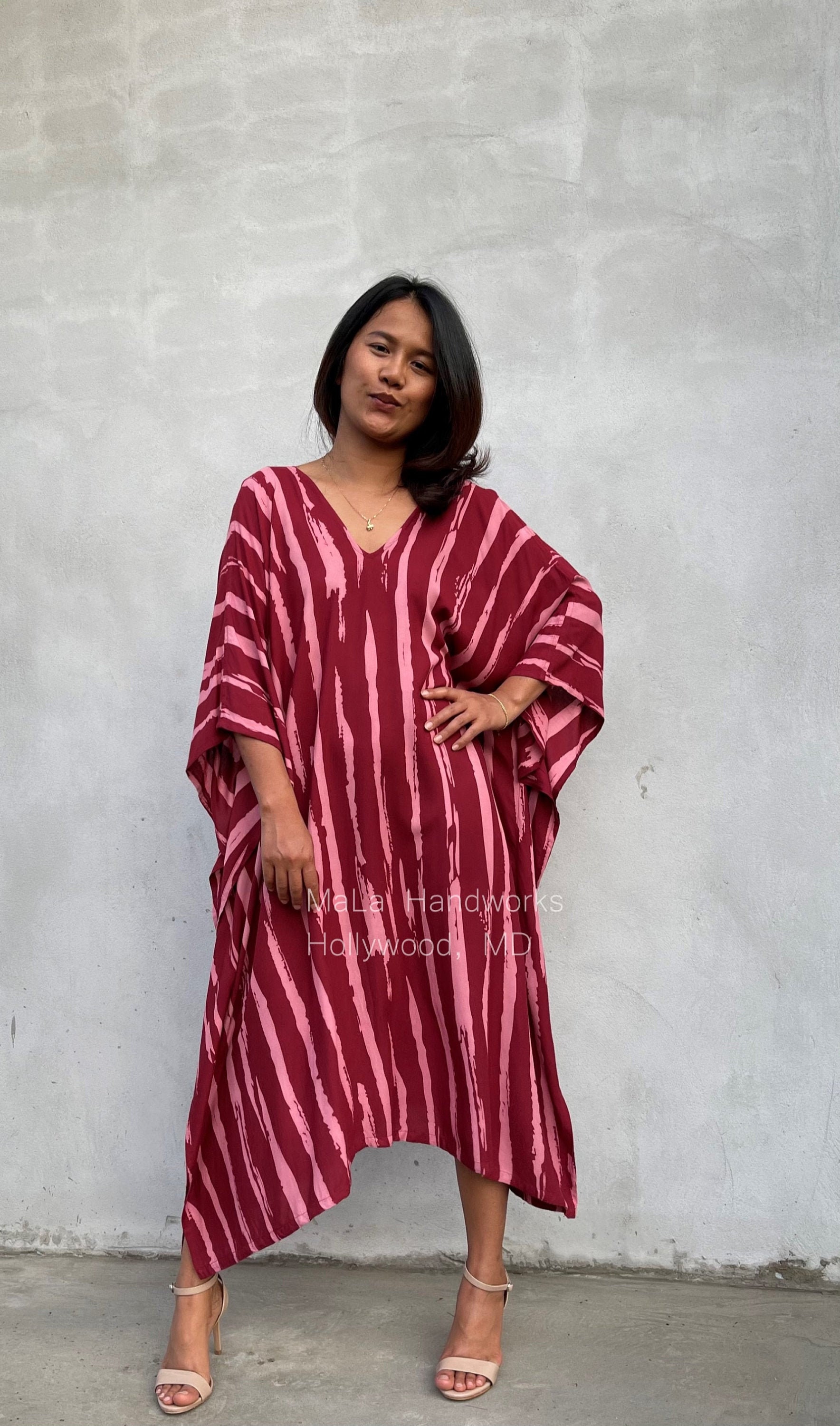 Red Hand Screened Kaftan A-212 Tropical Dress For Women Plus Size C...