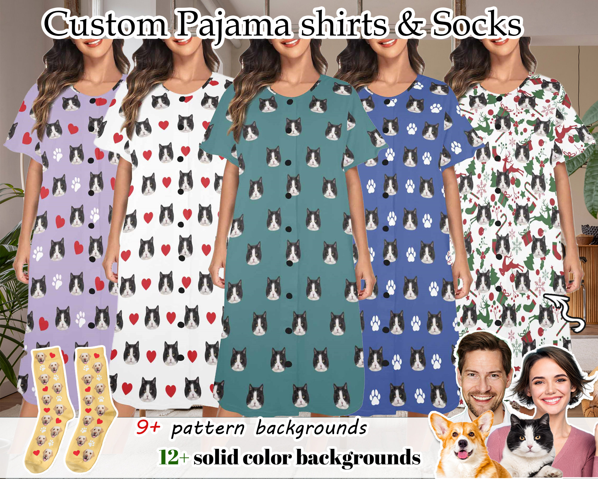 "Customized Women Pajama Shirt with Face Funny Photo Pajama Shirts Pet Face Pajama Dress Christ...