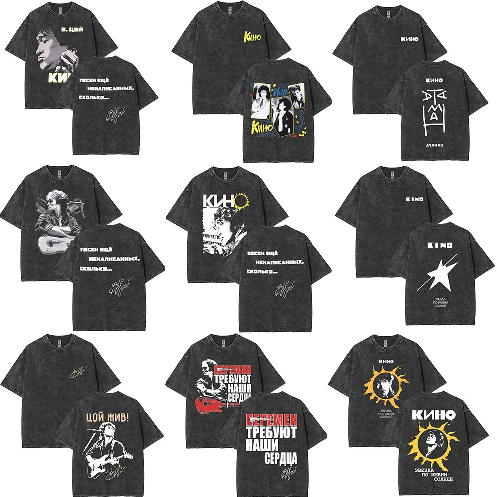 Viktor Tsoi Kino Night Vintage Washed T Shirts Classic Rusian Rock Gothic T-shirts Men Women Casual ...