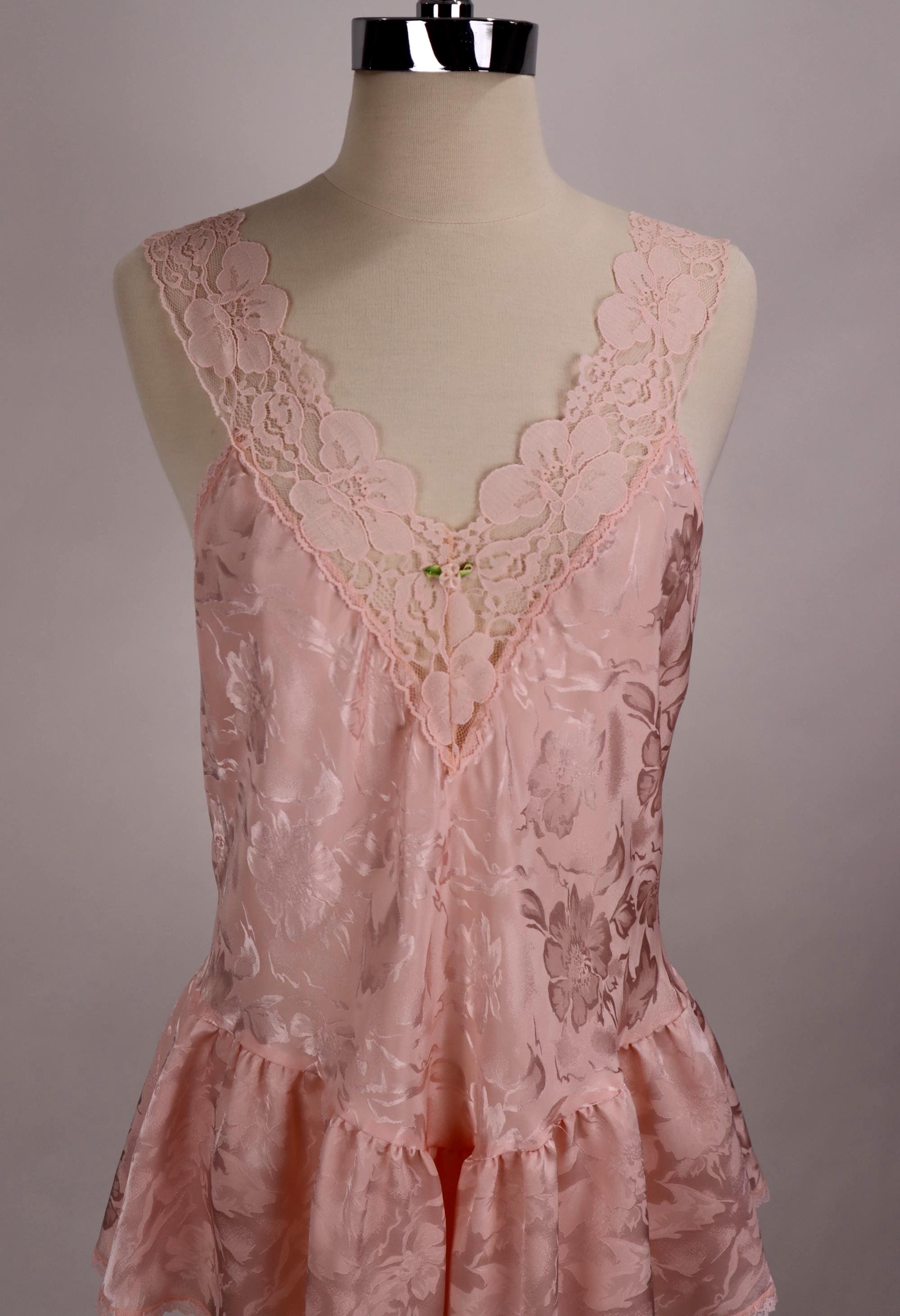 Vintage 1980's Victoria's Secret Pink Lace Jacquard Babydoll Nightg...