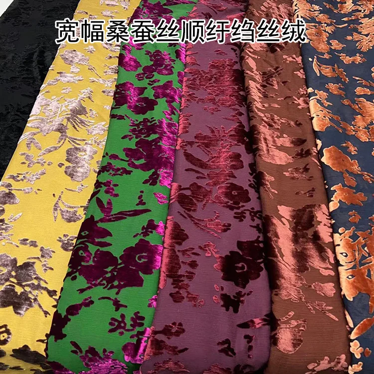 Silk Shantung Crepe Floral Velvet Fabric Mulberry Silk Velvet High-End Dress and Qipao