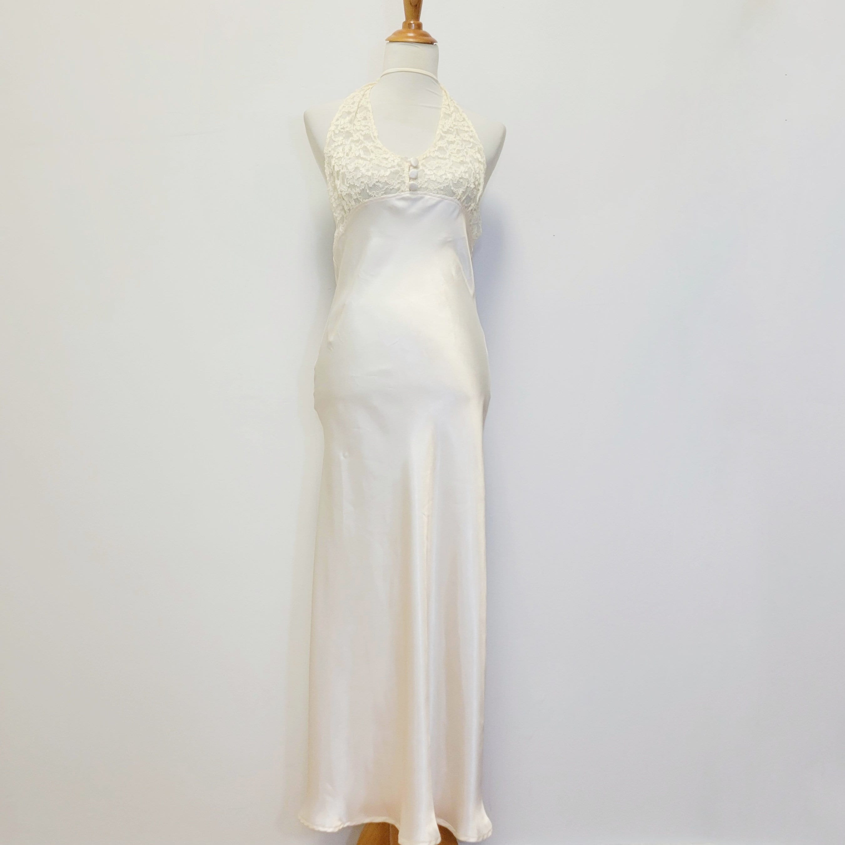 "Vintage 80s Victoria's Secret Gold Label Nightgown Bridal Cream Colored Silky maxi dress with ...