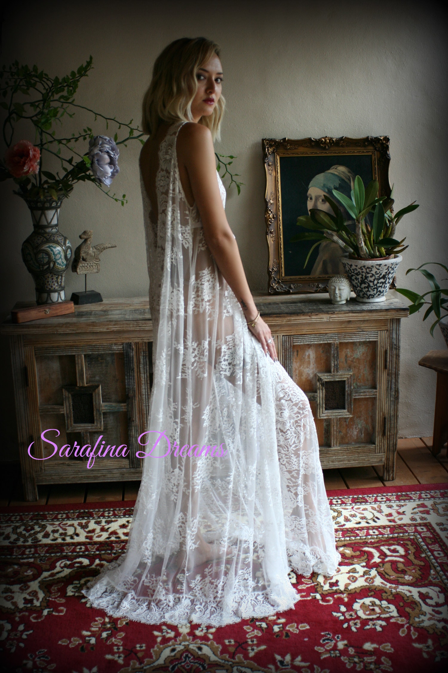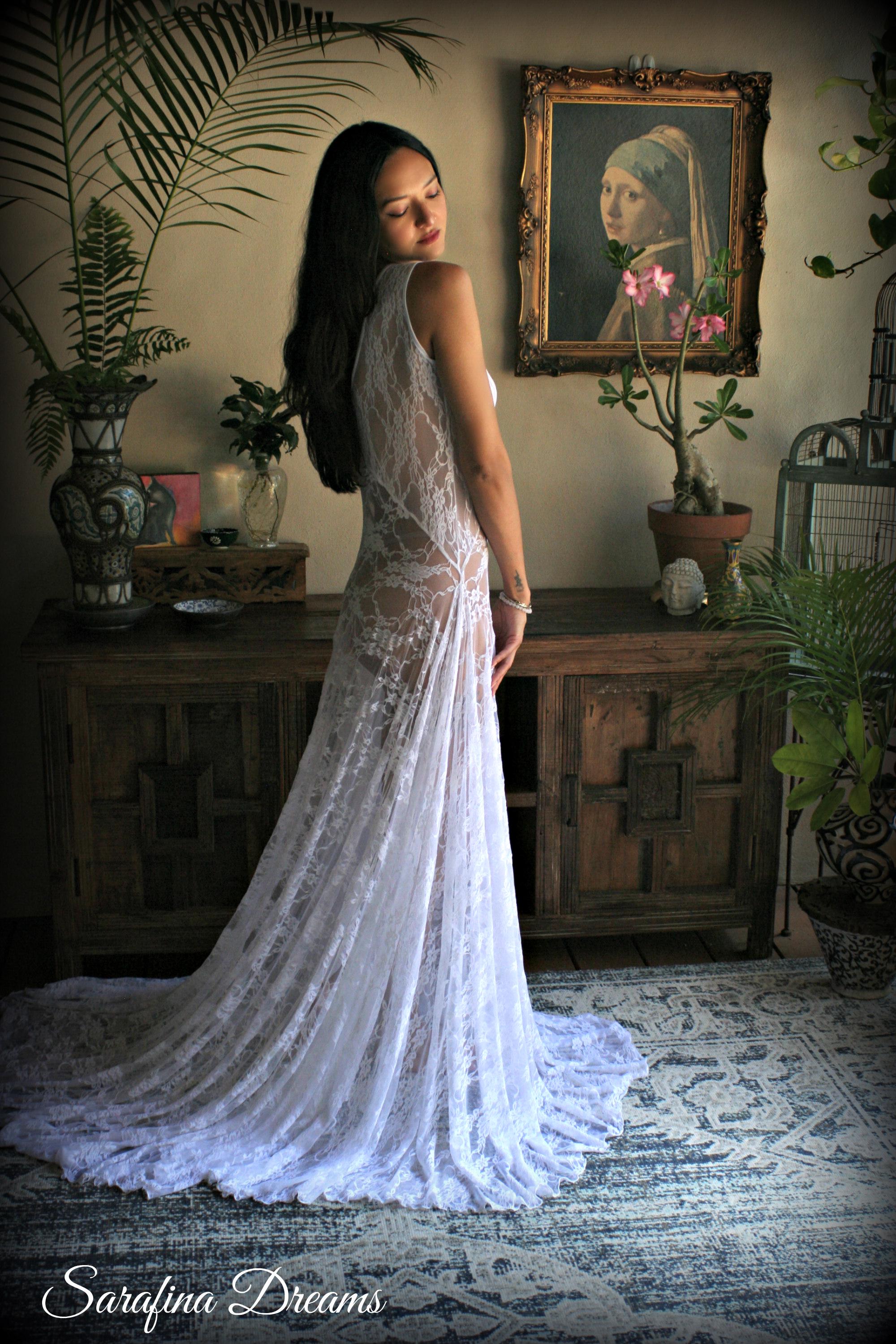 Backless lace bridal nightgown. This stunning white lace nightgown is the softest lace yet with beau...