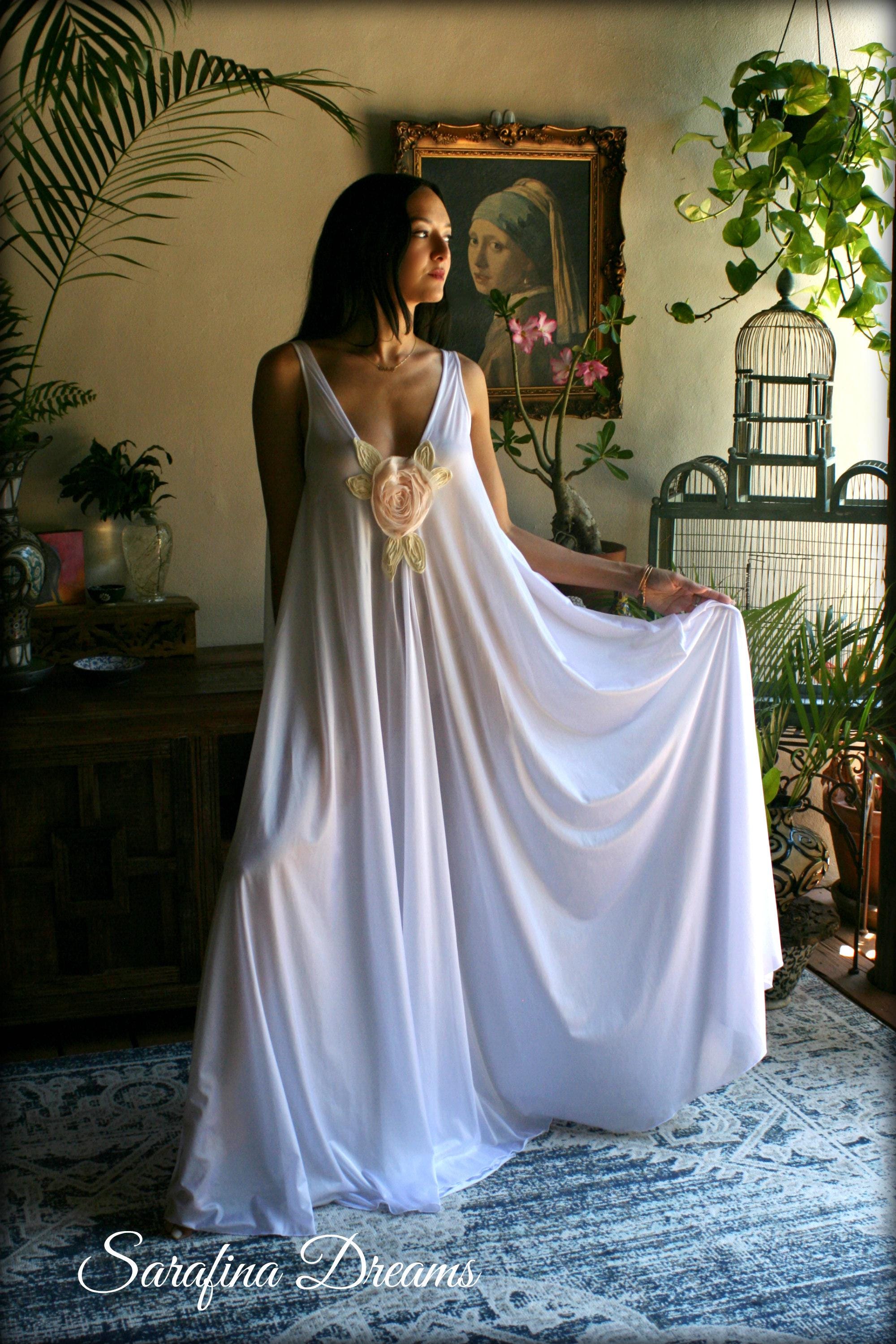 Bridal nightgown, White silk night gown, Bridal nighty dress, Weddi...